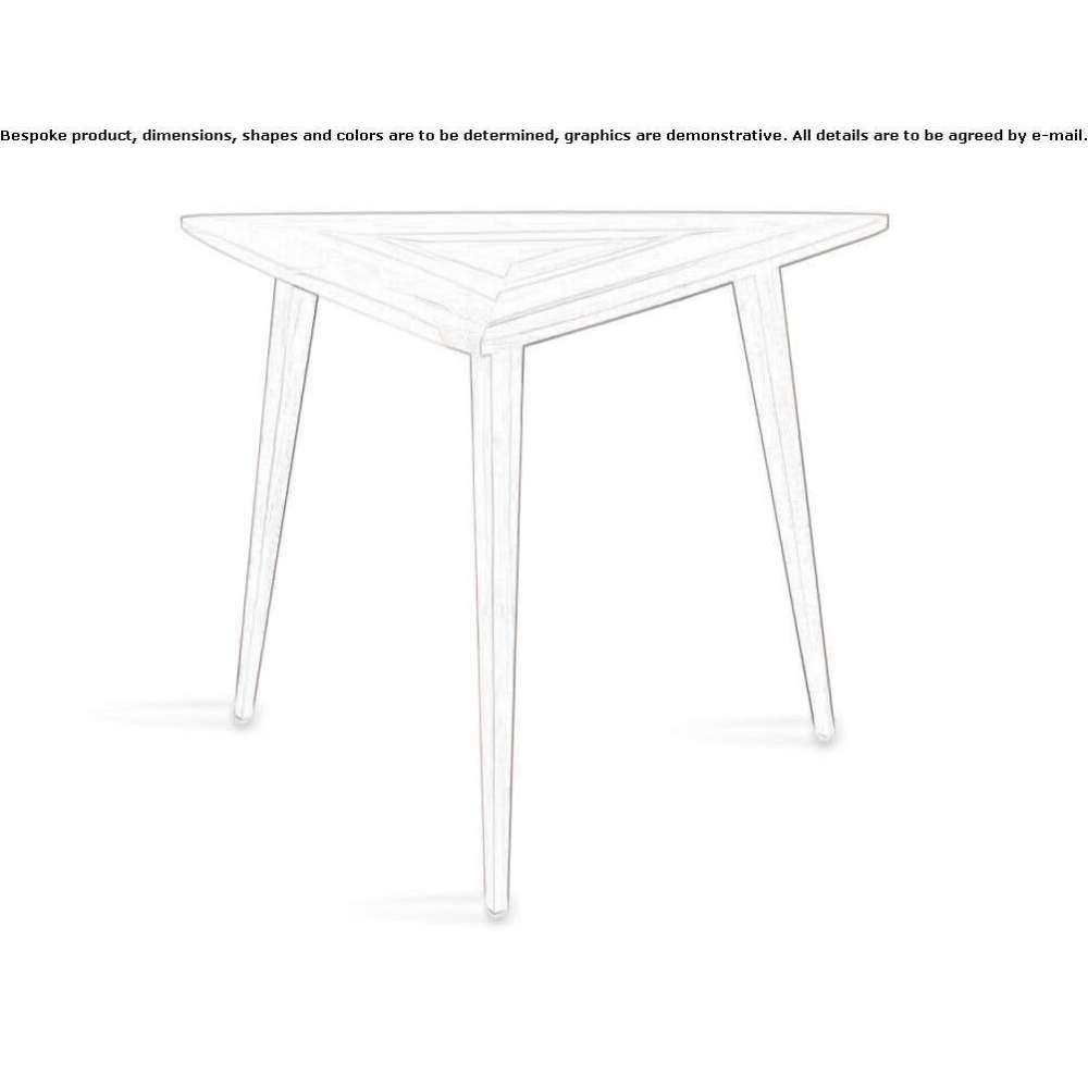Kształt zaokrąglonego trójkąta to podstawowy element, który przepływa przez wszystkie elementy tej kolekcji, a także przez ten stół bistro/klubowy.