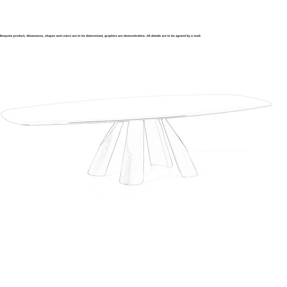 Stół ma metalową podstawę z wykończeniem z tytanu, czarnego niklu lub lakierowanego brązu mikowego lub oksydowej szarości. Blat wykonany jest z błyszczącej płyty MDF lakierowanej poliestrowo (RAL 7003) lub marmuru Emperador lub marmuru „białego Niveo” z obrotową tacą „Lazy Susan”. Siedem warstw lakieru nadaje blatowi wygląd przypominający szkło. Na życzenie blat może zostać dostarczony w dowolnym innym kolorze z palety RAL za dopłatą. Na blat z marmuru Moon Grey za dopłatą istnieje możliwość zabezpieczenia lakierem poliestrowym. Marmur charakteryzuje się porowatością i pękaniem, dlatego w procesie produkcyjnym jest wypełniany specjalnymi żywicami lub wkładkami z tego samego materiału. Po wypolerowaniu na powierzchni mogą pojawić się nieregularności i naturalne mikrodziury, które jednak nie wpływają negatywnie na trwałość produktu. Do prawidłowej konserwacji wszelkich powierzchni marmurowych zaleca się stosowanie środków neutralnych, bez środków odtłuszczających i żrących. Substancje kwasowe mogą zepsuć wypolerowaną powierzchnię marmuru. Zaleca się także unikanie kontaktu z płynami i kwaśną żywnością oraz natychmiastowe usuwanie tych substancji w przypadku przypadkowego kontaktu z powierzchnią.