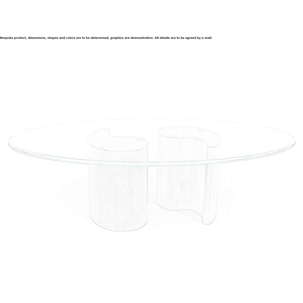 Główną cechą stołu Arp jest podwójna podstawa z dwoma rzeźbionymi elementami „yin i yang”. Dzięki cennemu blatowi z wyjątkowo przezroczystego, fazowanego szkła stół do jadalni Arp jest sugestywnym, jasnym i wyrafinowanym elementem o duchowym i symbolicznym uroku.
