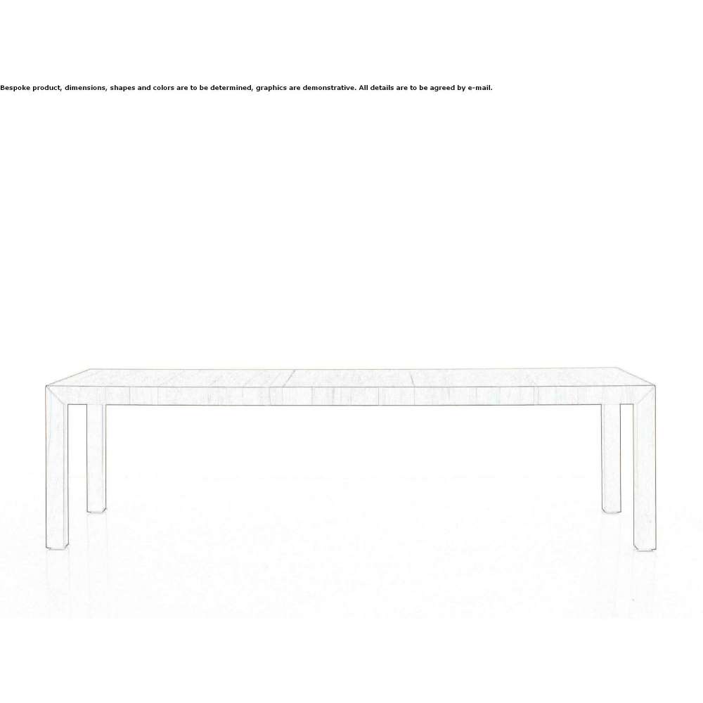 Blat i nogi wykonane z litego drewna klejonego i laminowanego w różnych gatunkach drewna. Grubość blatu: 8,5 cm, konstrukcja ramowa. Wymiary stopy: 8,5 x 8,5 cm. Opcjonalnie z przedłużeniem: w 60 cm (od długości do 120 cm), w 120 cm (od długości do 180 cm) lub w 180 cm (od długości do 240 cm). Istnieje możliwość produkcji stołów o długości do 480 cm z możliwością rozłożenia.