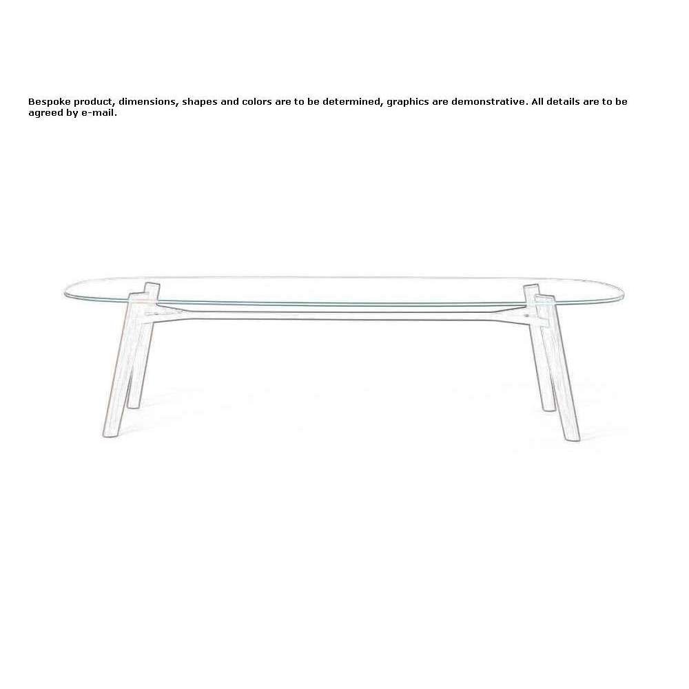 Beleos to stół z podstawą z litego drewna orzecha amerykańskiego lub dębu, naturalnego, bejcowanego lub lakierowanego matowo. Belka jest dostępna w kolorze matowego brązu lakierowanego lub matowego brązu. Blat z drewna dębowego, orzecha amerykańskiego lub wyjątkowo przezroczystego szkła. Jest dostępny w trzech różnych rozmiarach.