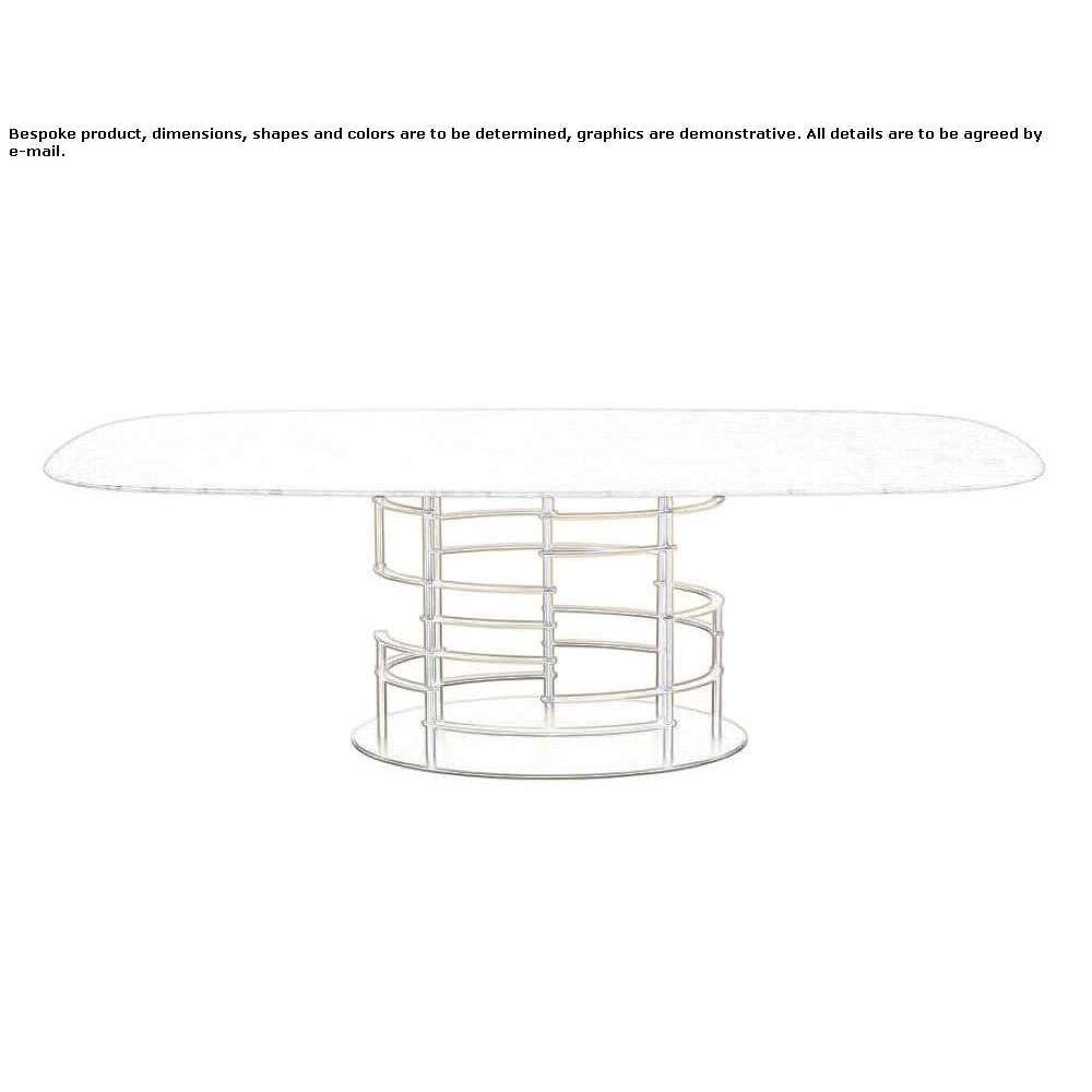 Rama stołu REMBRANT wykonana jest z warstw metalowych prętów i wygląda jak gwiazdy i galaktyki. Blat jest wspierany przez lekką i graficzną strukturę, co dodaje więcej zabawy.