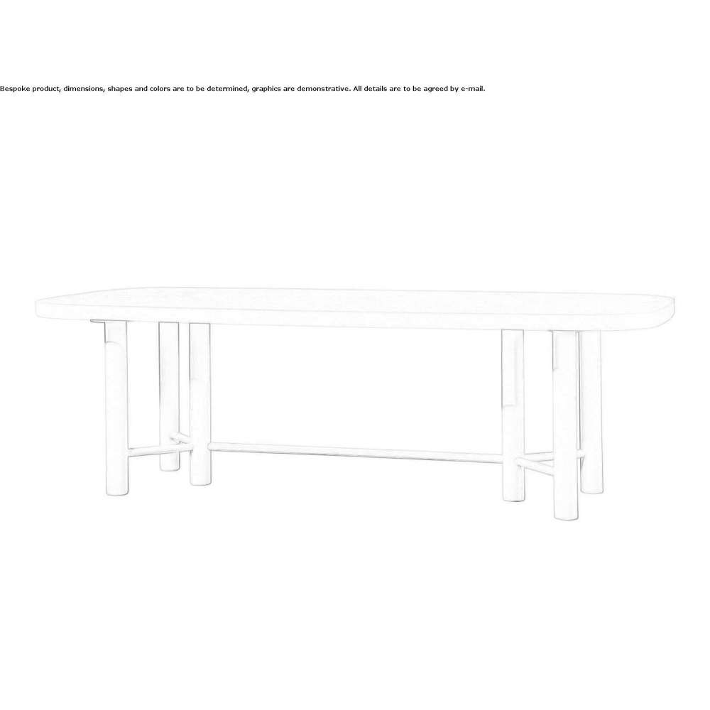Turin to prostokątny stół wykonany z drewna z blatem o grubości 5 cm. Stół Turin ma charakterystyczny zestaw nóg i blat z zaokrąglonymi krawędziami. Można pokryć materiałem na bazie żywicy.