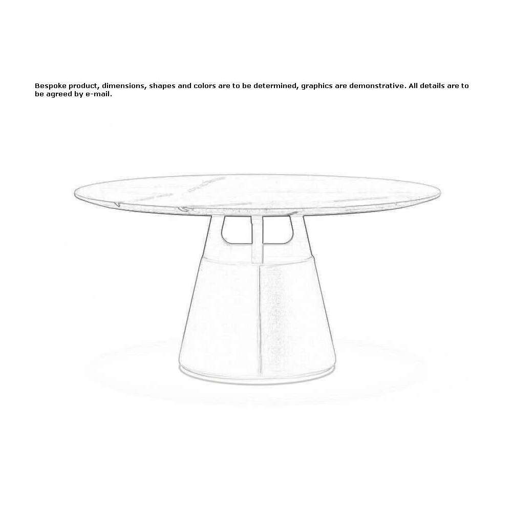 Unity to okrągły stół ze stożkową podstawą z czarnej eko skóry. Można go wyposażyć w obrotowy blat Lazy Susan, dostępny w różnych materiałach. Blat stołu może być wykonany z brązowego orzecha lub marmuru. Jest dostępny w różnych rozmiarach.