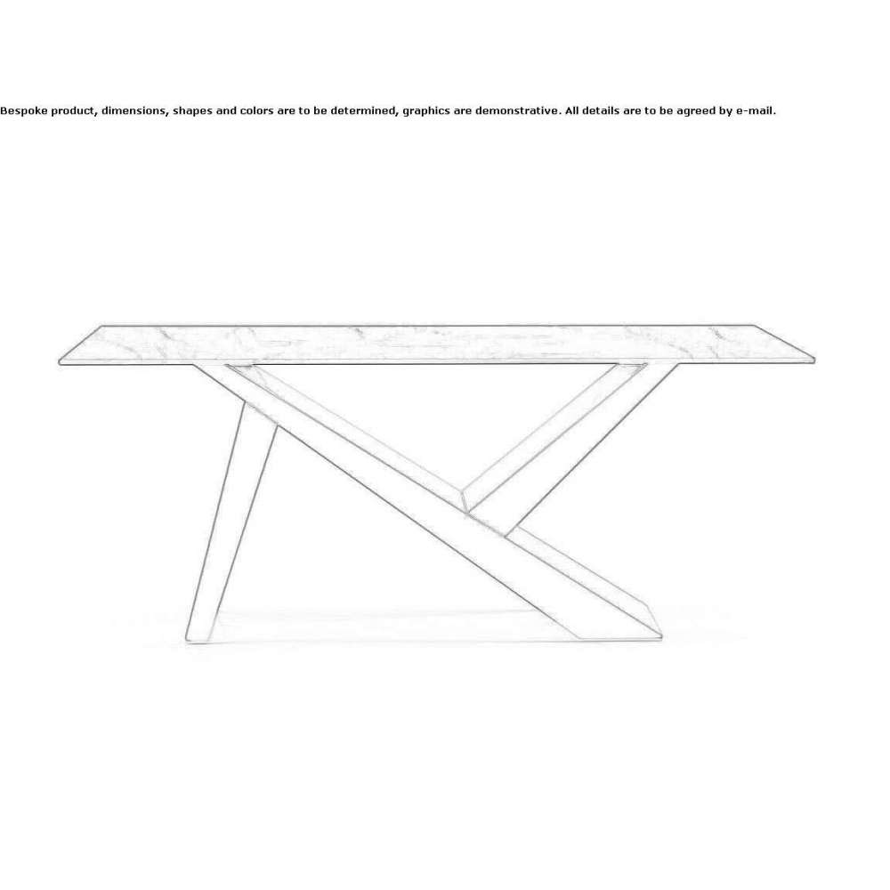 Ikarus to stały stół z ceramicznym blatem i metalową ramą. Produkt można dostosować w zakresie wykończeń ramy i blatu i jest dostępny w różnych rozmiarach, w kształcie prostokąta lub beczki, a także w wersji rozkładanej.