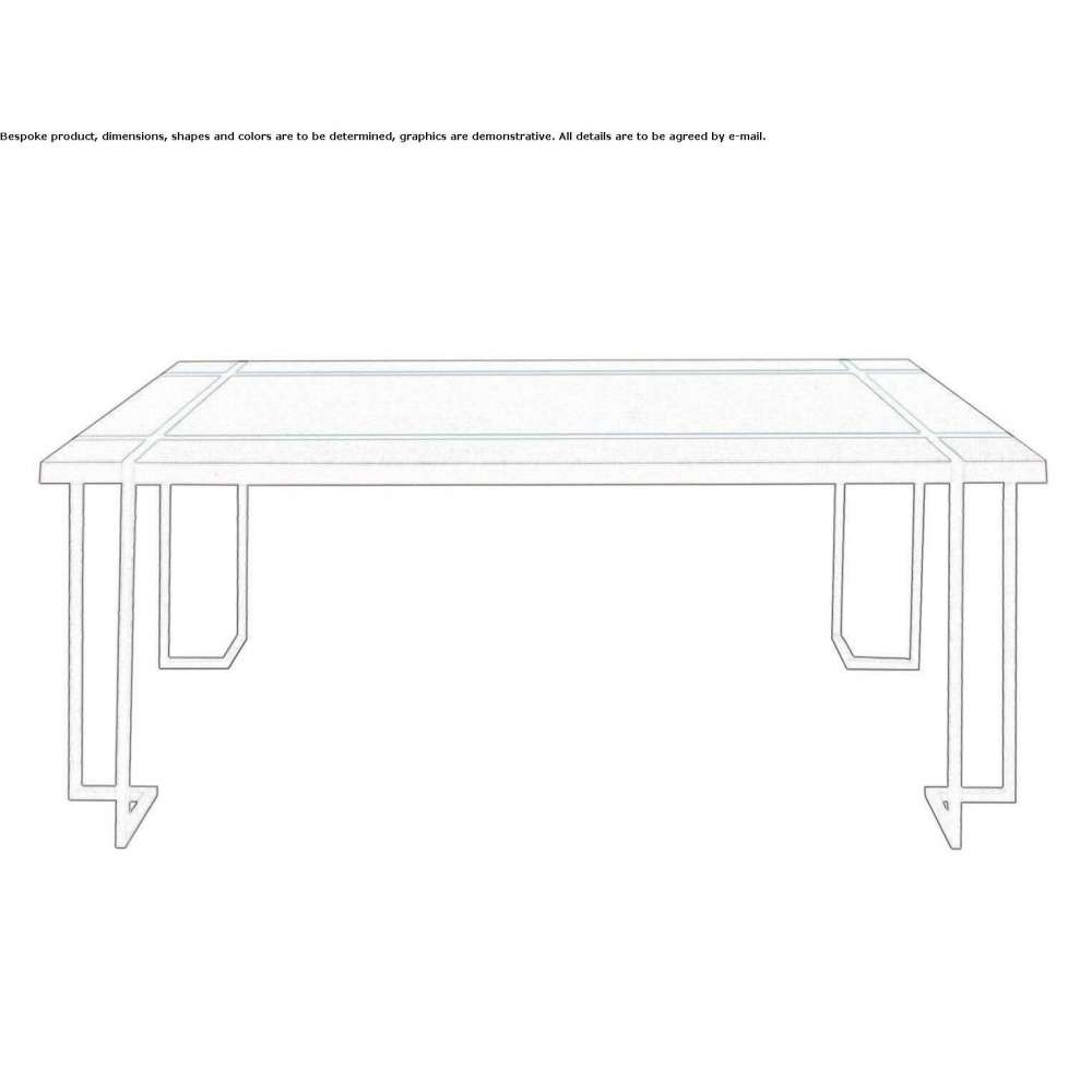 Ribbon to prostokątny stół wykonany z ciemnego drewna i czarnych linii przecinających się w narożnikach.