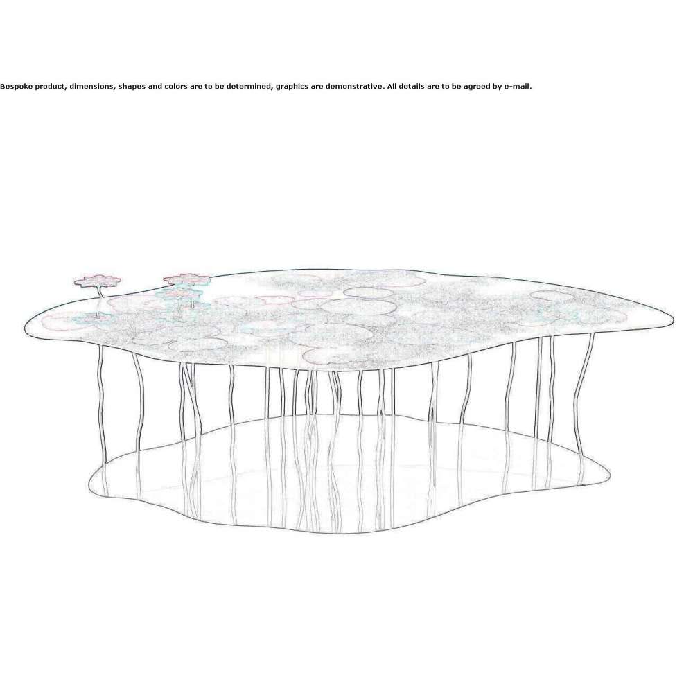 Stół z siedmioma liśćmi i niekończącymi się dekoracjami kwiatowymi, który rozszerza i zwielokrotnia swój wymiar przestrzenny w kierunku miejsce bez granic to odpowiedź UNICA na chęć odtworzenia sugestii, że tylko pole kwiatów pod błękitnym niebem może zapewnić patrzącemu.
