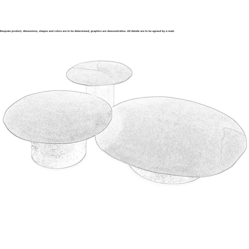 Stolik kawowy ze szkła pochodzącego z recyklingu, z wykończeniem „melange terre”. Ponieważ jest to dzieło naturalne, wymiary mają charakter orientacyjny, a powierzchnia może nie być całkowicie płaska.