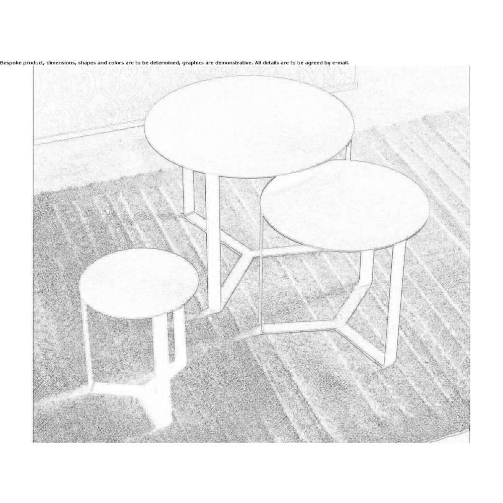 Stoliki kawowe z metalu wycinanego laserowo, wkładane z boku.