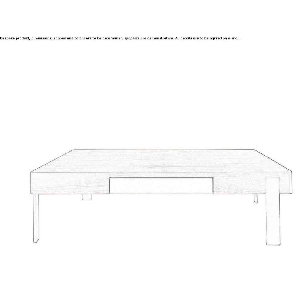 Przyciągający wzrok stolik kawowy FOUR SEASONS charakteryzuje się blatem z forniru drewnianego, szufladami po bokach - czterema w wersji kwadratowej i dwiema w wersji prostokątnej - oraz naprzemiennymi stalowymi nogami.