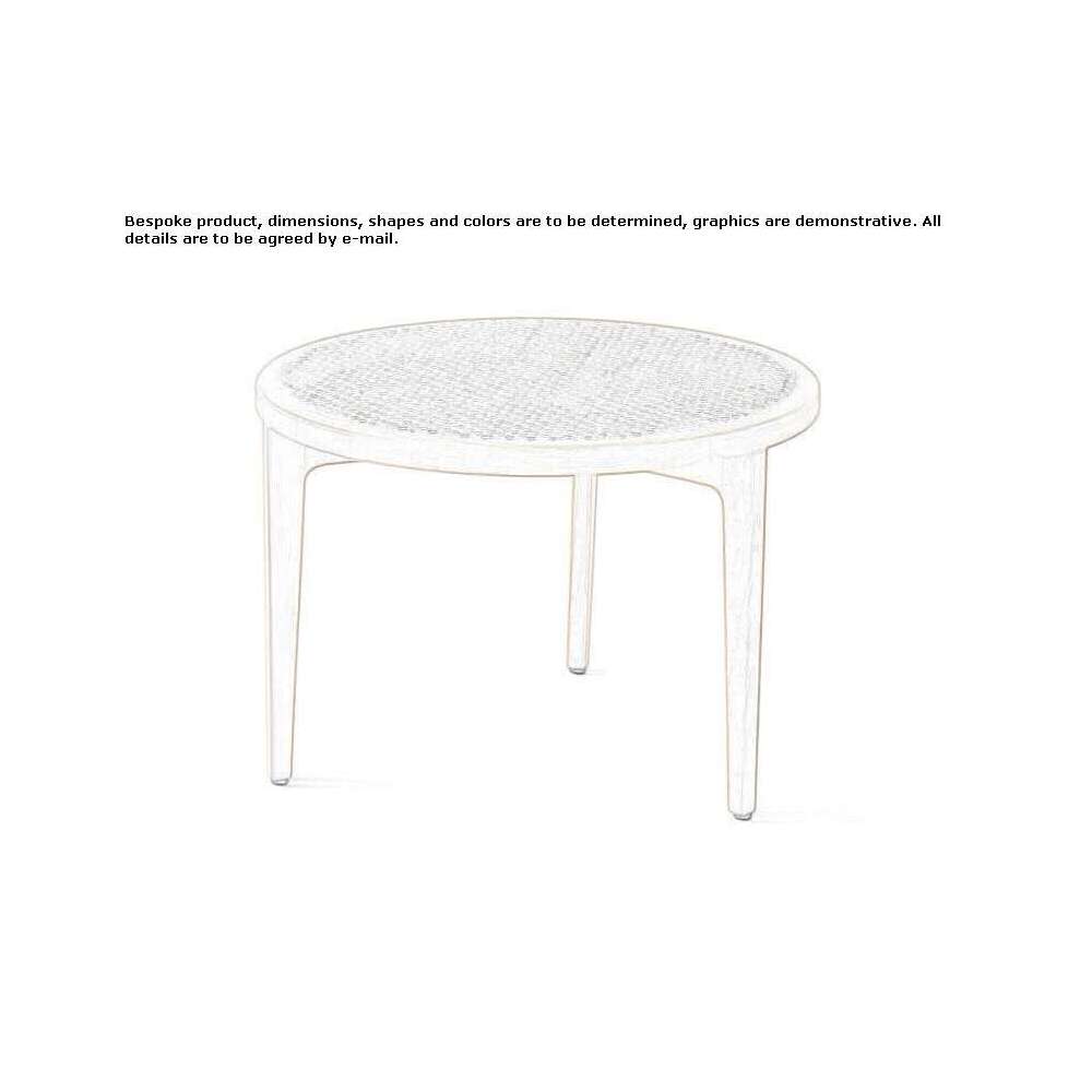 Stolik kawowy Le Roi wykonany jest z litego dębu z inkrustowanym naturalnym francuskim rattanem. Le Roi to francuskie słowo oznaczające króla, a seria stanowi minimalistyczną interpretację mebli rattanowych z czasów kolonialnych Francji, połączoną ze znanymi skandynawskimi archetypami mebli, takimi jak okrągły stół z trzema nogami i prostokątna ławka.