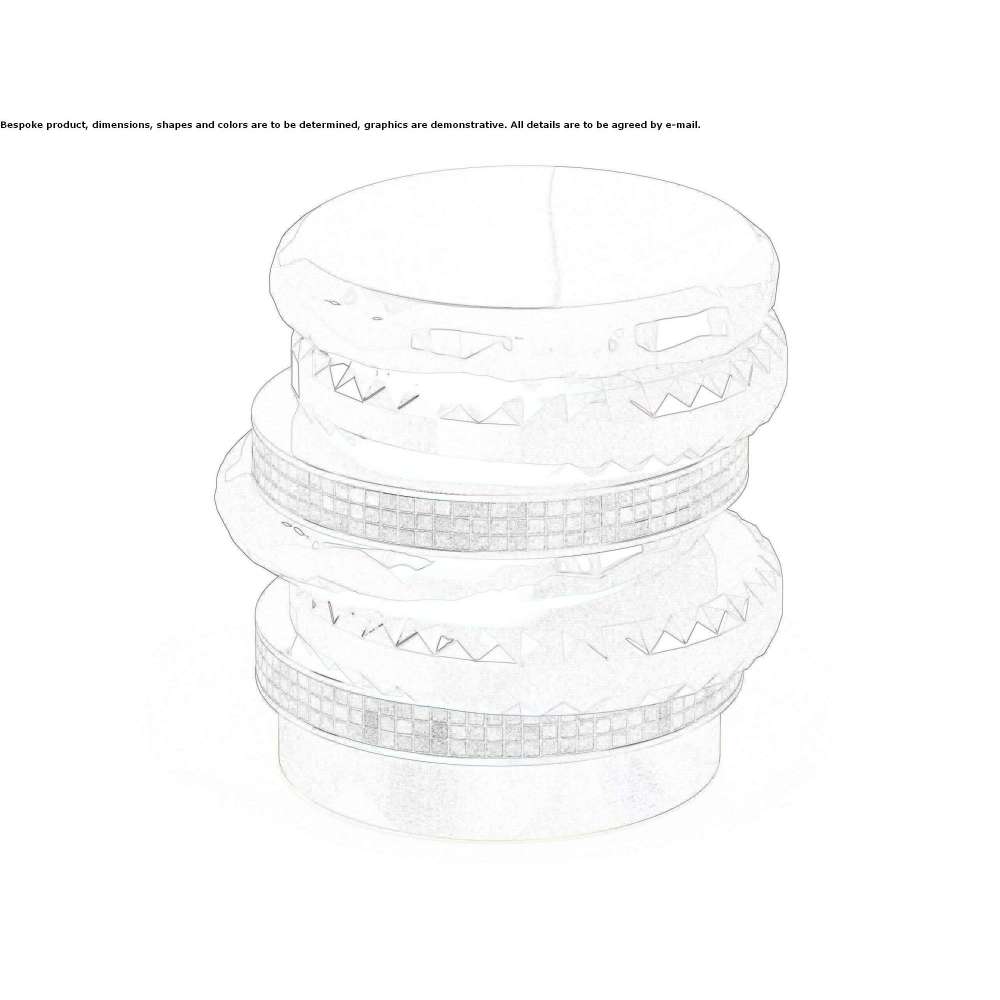 Queen B to stolik boczny o drewnianej konstrukcji składającej się z kształtowanych dysków; błyszczące, lakierowane wykończenie. Pasujące wstawki mozaikowe. Podstawa z antycznego brązu lub antycznego srebra.