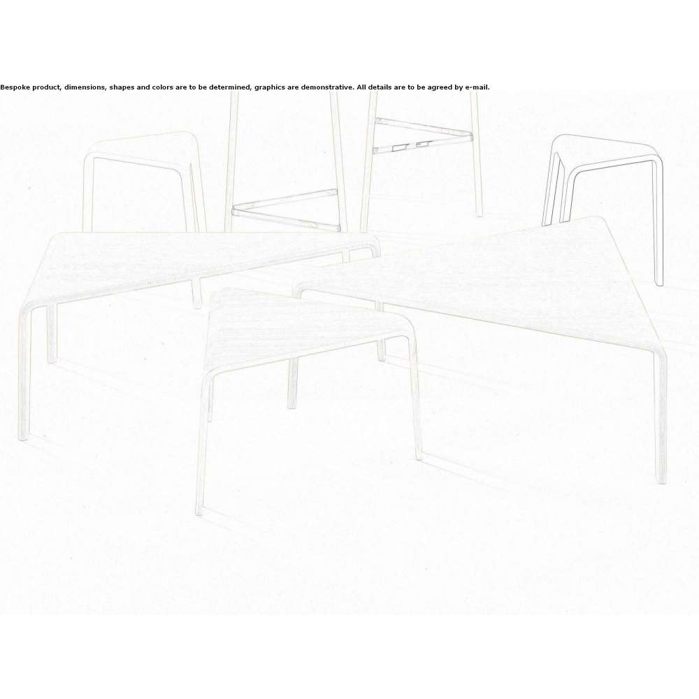 Trójkątny w formie i modułowy charakter, Ply to system niskich stołów i hokerów wykonanych w płynnych liniach drewna. Zaprojektowany tak, aby stworzyć ciągłą linię od góry do nogawek, jego zredukowana sylwetka i ciepły materiał uzupełniają jego dynamiczną formę. Samodzielnie lub w grupach zabawna geometria powierzchni Ply przypomina grę w Tangram, kształt i kolor współpracują ze sobą, tworząc otwarte kompozycje. Stoły dostępne są z różnymi wariantami blatów i wysokościami (36 cm i 44 cm) w kolorze dębowym, czarnym i czerwonym. Taborety dostępne są w trzech wysokościach (44, 64 i 76 cm) do zastosowań restauracyjnych i barowych w dwóch kolorach: naturalny dąb i czarny.