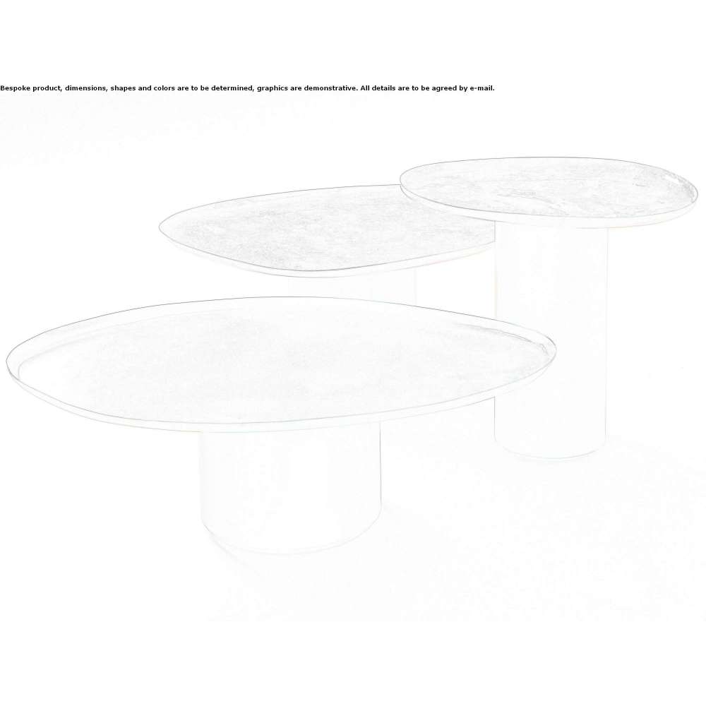 Drops to rodzina stolików kawowych w trzech różnych rozmiarach, inspirowana nieoczekiwanymi, nieregularnymi kształtami kropelek wody na powierzchni. Ich miękkie, znajome linie ucieleśniają wykwalifikowany kunszt i rzemieślniczą wiedzę De Castelli, która wskrzesiła tradycyjną technikę ręcznego kucia i kształtowania miedzi. Stoły są zatem ukłonem w stronę tradycji, która we współczesnej interpretacji przejawia się w produktach, które harmonijnie integrują się z codziennym otoczeniem.