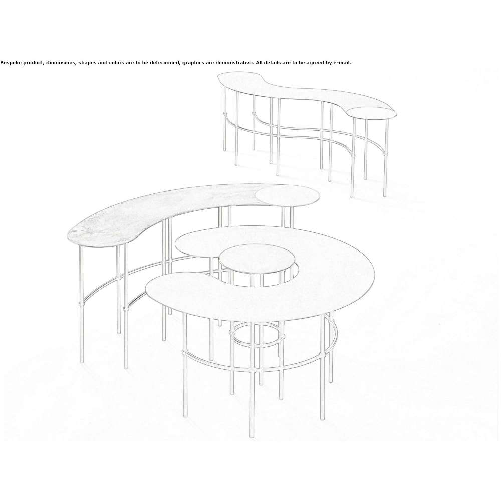 Kolekcja metalowych stolików bocznych zdefiniowanych przez kręte kształty blatów. Edycja limitowana. Sprzedawane również pojedynczo.