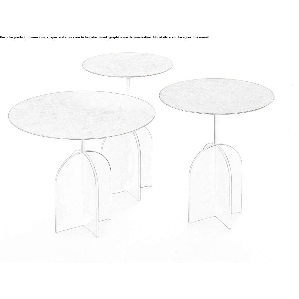 Zestaw stolików bocznych wykonanych w 100% z metalu charakteryzujących się ciężką podstawą w kształcie krzyża, która równoważy okrągły blat.