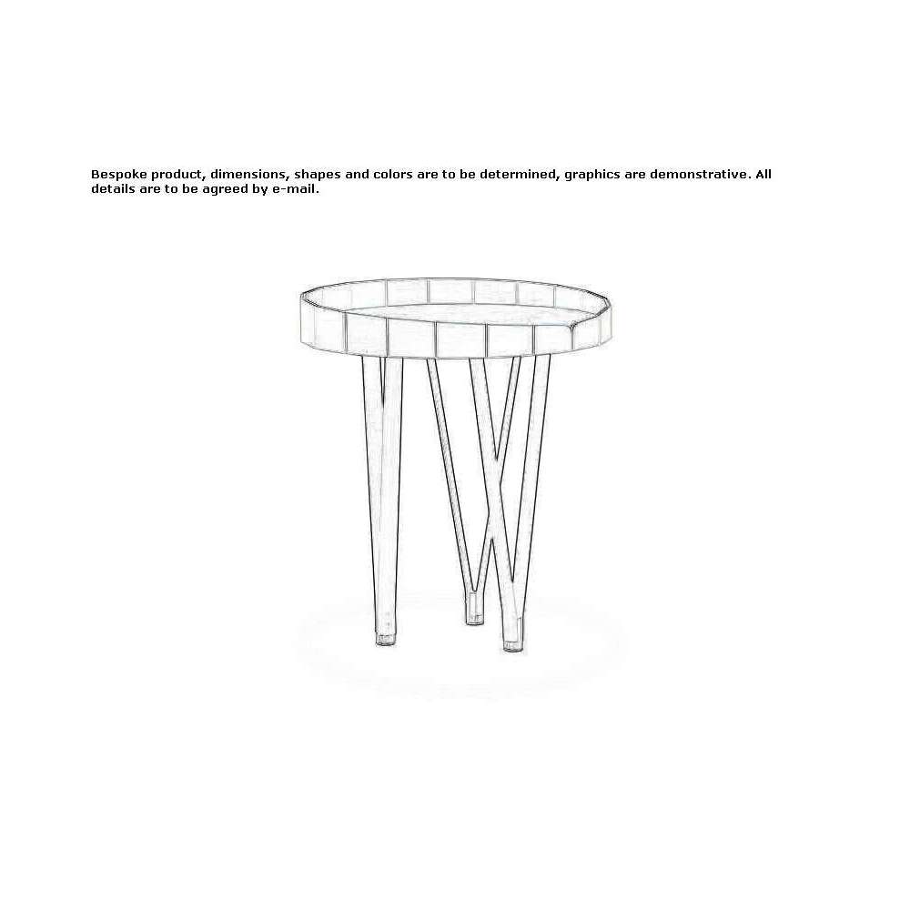 Mały stolik z czarną metalową podstawą i mosiężnymi nóżkami. Odbywa się poprzez składanie panelu, uzyskanego poprzez dociśnięcie siebie listew z litego drewna klonowego, skóry barwionej na czarno i ponownie listew z litego drewna klonowego. Blat wykonany z drewna, podobnie jak konstrukcja, lub z dodatkowym panelem pokrytym skórą.
