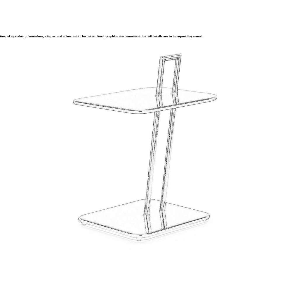 Stolik boczny. Podstawa z rurek stalowych chromowanych. Blat okrągły lub prostokątny z płyty MDF lakierowanej na wysoki połysk w kolorze czarnym, szarym, białym lub chińskiej czerwieni. Plastikowe ślizgacze w kolorze szarym.
