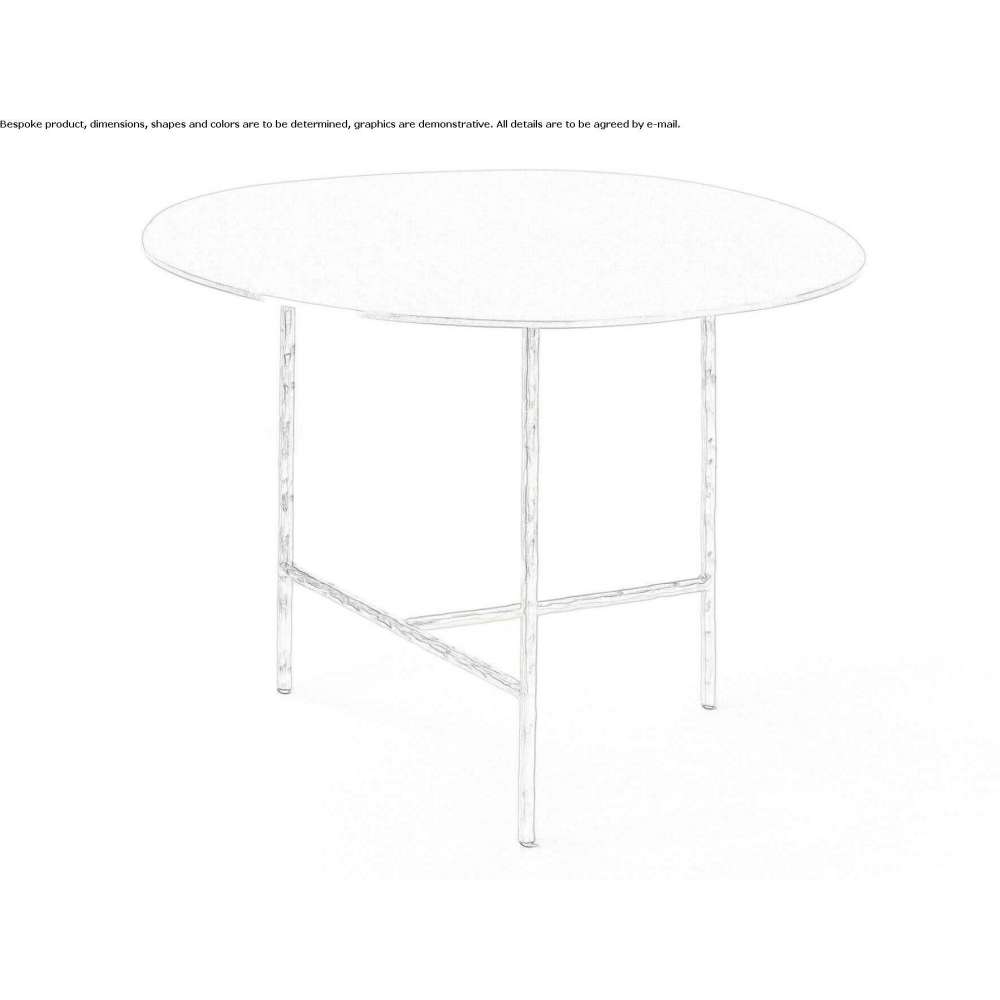 Okrągły stalowy stolik kawowy z blatem o nieregularnym kształcie i konstrukcją z kutego żelaza. Dostępne w dwóch rozmiarach. Najlepsze wykończenia: niklowanie galwaniczne lub powierzchnia platerowana 24-karatowym złotem z efektem zarysowania. Wykończenie konstrukcji: niklowanie galwaniczne lub złocenie 24 K