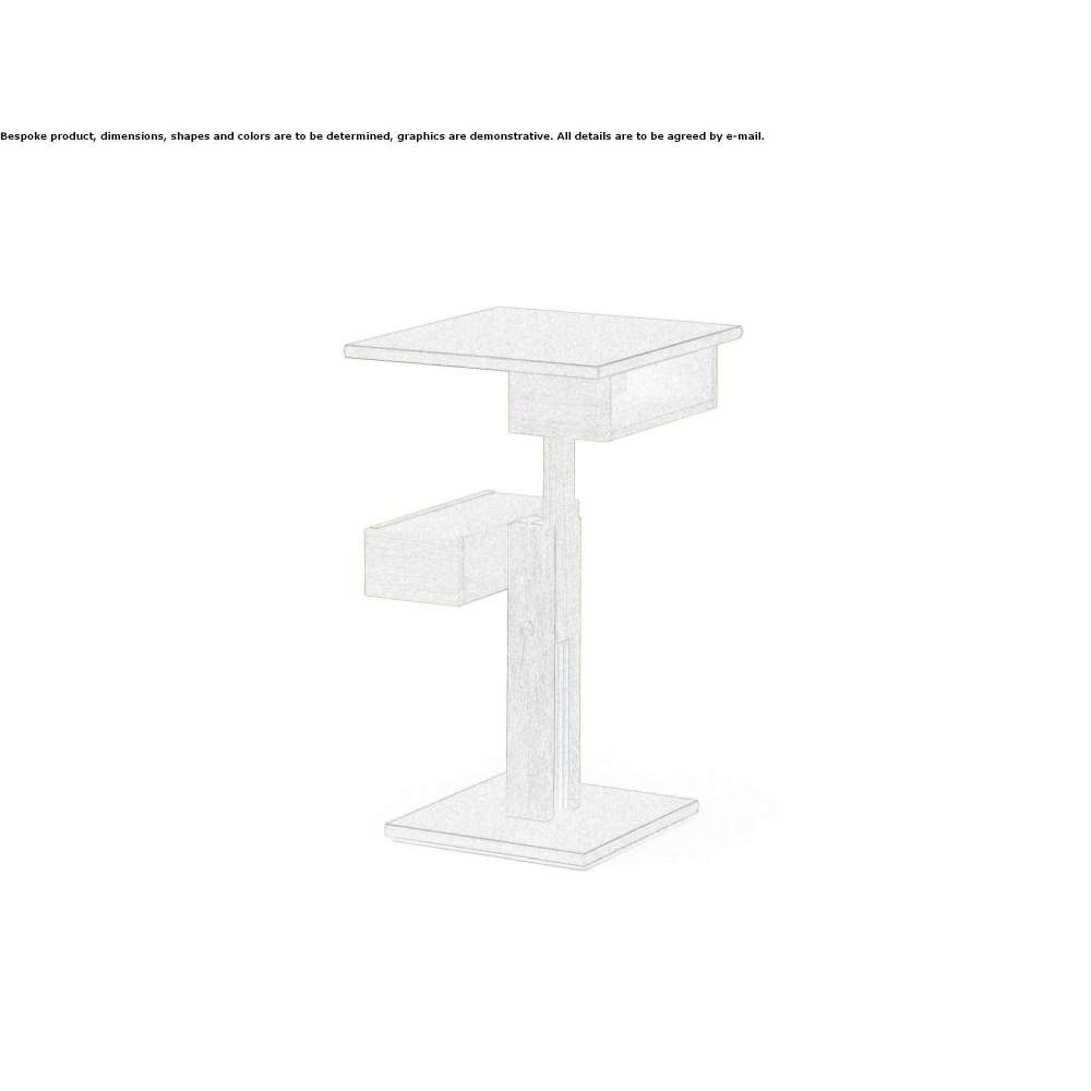 Mały stolik lub stolik nocny w konstrukcji drewnianej z możliwością regulacji wysokości. Szuflady są w okleinie (drewno). Wierzch i podstawa są w wykończeniach Exclusive (Polaris), a krawędź obwodowa ma to samo wykończenie drewna co konstrukcja. Stolik do wykorzystania w części nocnej jako stolik nocny lub w salonie jako mały stolik boczny. Standardowa pozycja szuflady jest zawsze po lewej stronie.