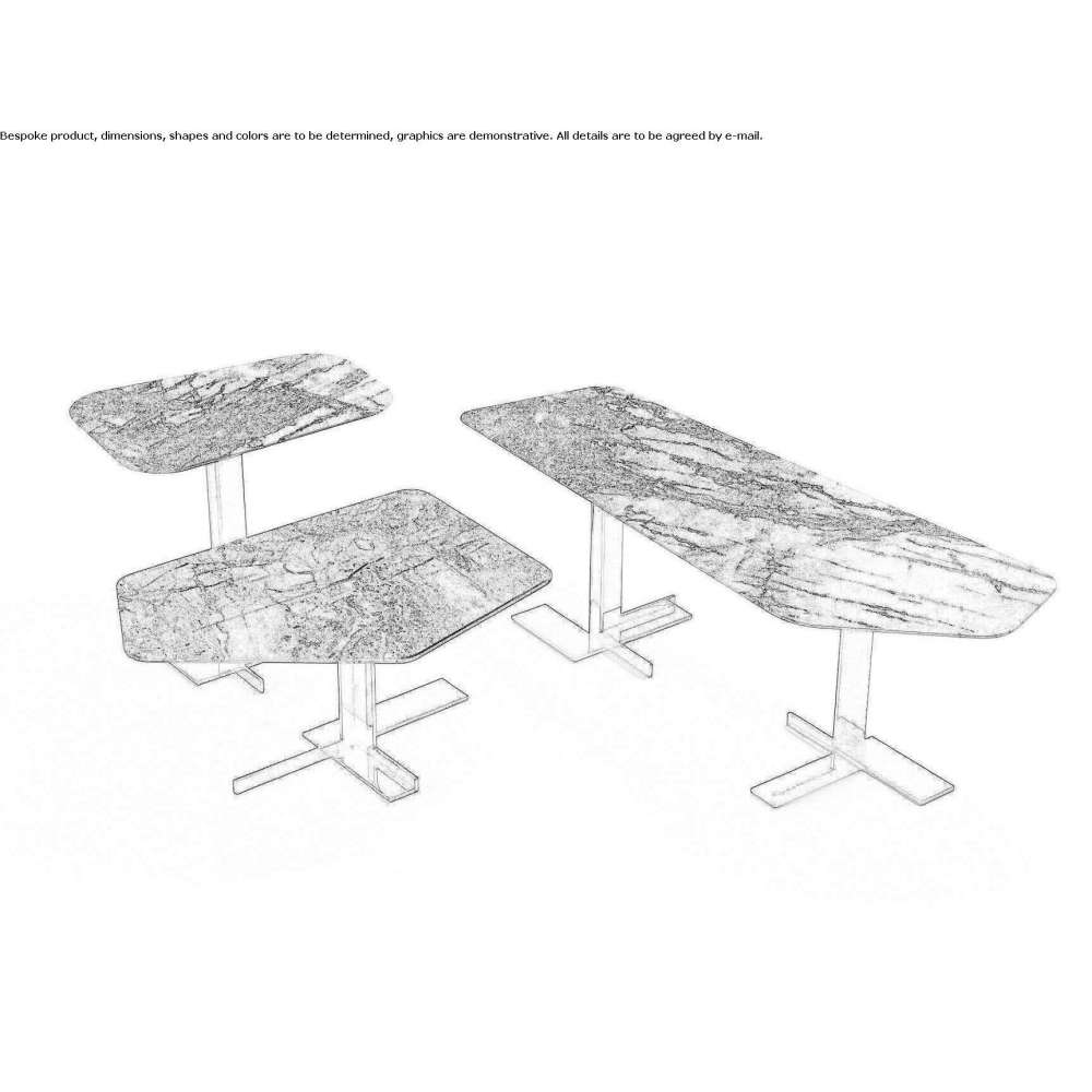Kultową kolekcję LITH poszerzają trzy nowe wersje stolików bocznych w różnych kształtach i wysokościach oraz elegancki stolik konsolowy. Powierzchnie charakteryzują się geometrycznymi formami z zaokrąglonymi narożnikami, podczas gdy metalowe podstawy tworzą wysoce rzeźbiarskie struktury w kosmopolitycznym dialogu projektowym. Małe stoły Lith są atrakcyjne ze względu na swoją formę: miękkie i sztywne elementy, niezwykle przeciwstawne, współistnieją, tworząc harmonijny i styl kosmopolityczny. Można je umieścić w pomieszczeniu jak małe planety. Dostępny w trzech wersjach: okrągłej, kwadratowej i prostokątnej do stołu z blatem z marmuru lub piaskowca; owalne, kwadratowe i prostokątne z tępymi krawędziami do stołu z blatem ze szkła dymionego. Metalowa podstawa jest dostępna w kolorze mikowego brązu lub czarnego niklu.