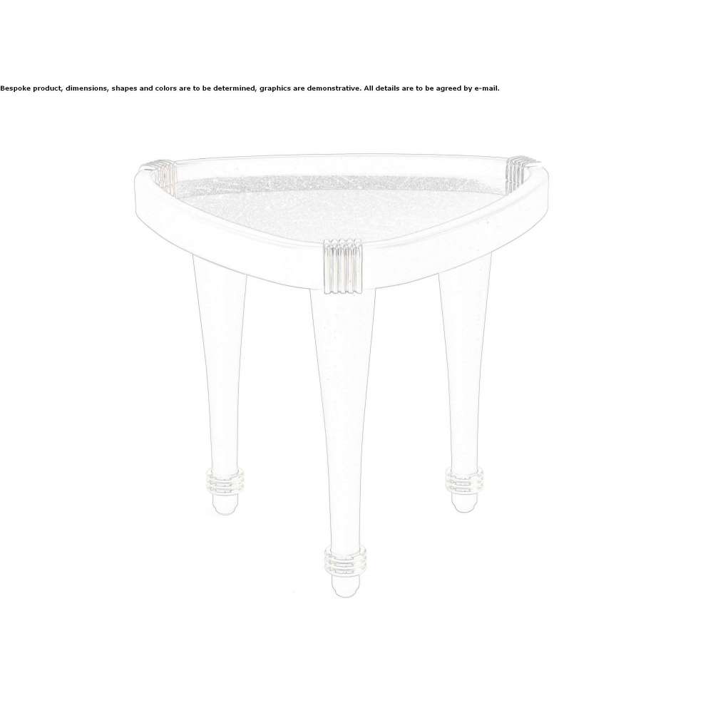 Konstrukcja z litego drewna bukowego barwionego na matowy ciemny Wengé, toczona i sterowana numerycznie. Dekoracyjne pierścienie z polerowanego odlewu mosiężnego. Blat z płyty MDF barwionej na ciemny Wengé, fornirowanej Carbalho lub fornirowanej wędzonym eukaliptusem Frisé lub pokryty tkaniną z kolekcji i wykończony arkuszem przezroczystego szkła.