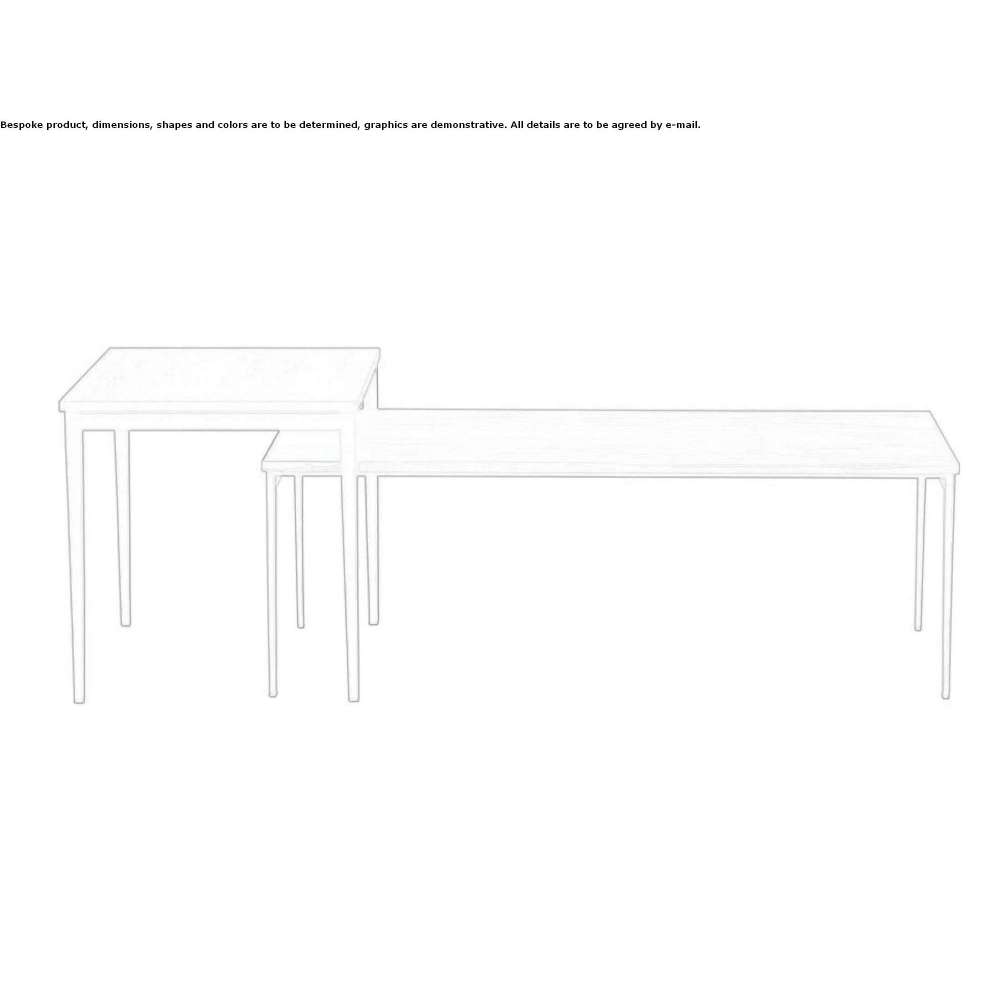 Stolik kawowy i stolik boczny z lakierowaną metalową podstawą i blatami ze szkła młotkowanego lub drewna. Proste linie podkreślające materialność różnych blatów.