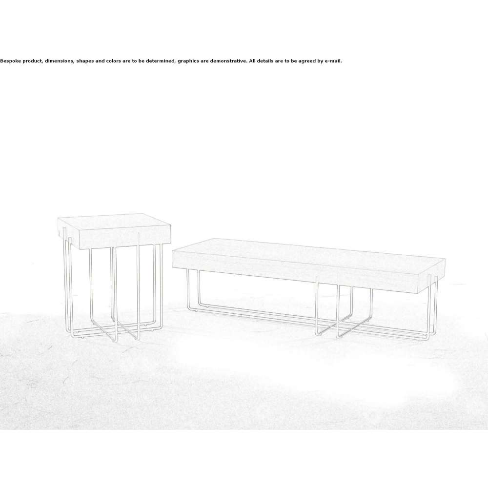Cruz to stolik kawowy lub stolik boczny, którego nowoczesność łączy się z naturalnym ciepłem blatu. Metalowe rurki tworzące konstrukcję krzyżują się ze sobą i docierają do drewnianego blatu.