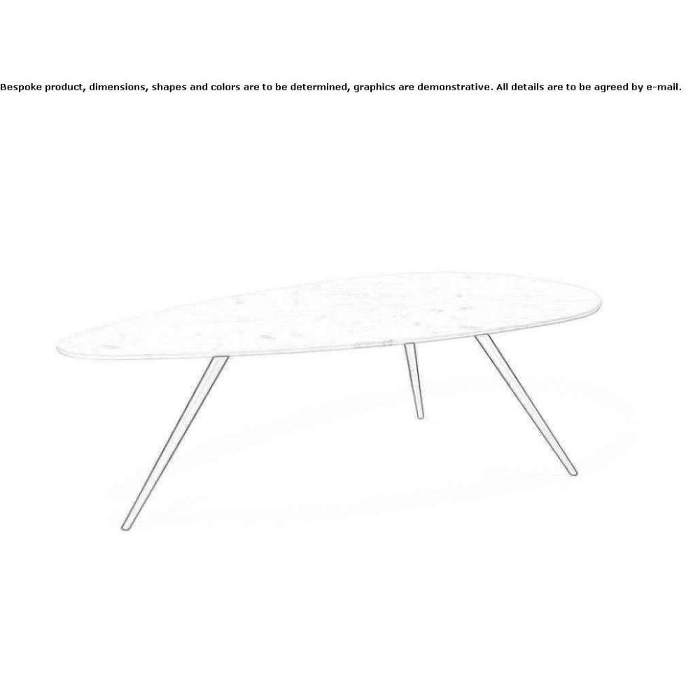 Egge to wieloaspektowy marmurowy stolik kawowy z metalowymi nogami. Nowoczesny i smukły stolik kawowy Egge przyciąga całą uwagę swoją prostotą i minimalistyczną konstrukcją z trzema nogami.
