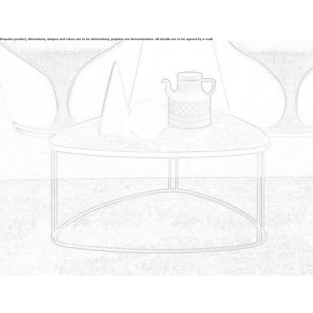 Kompozycja stolika kawowego i stolików bocznych z lakierowaną metalową podstawą i lakierowanymi blatami z MDF oraz drukiem cyfrowym lub szkłem młotkowanym.