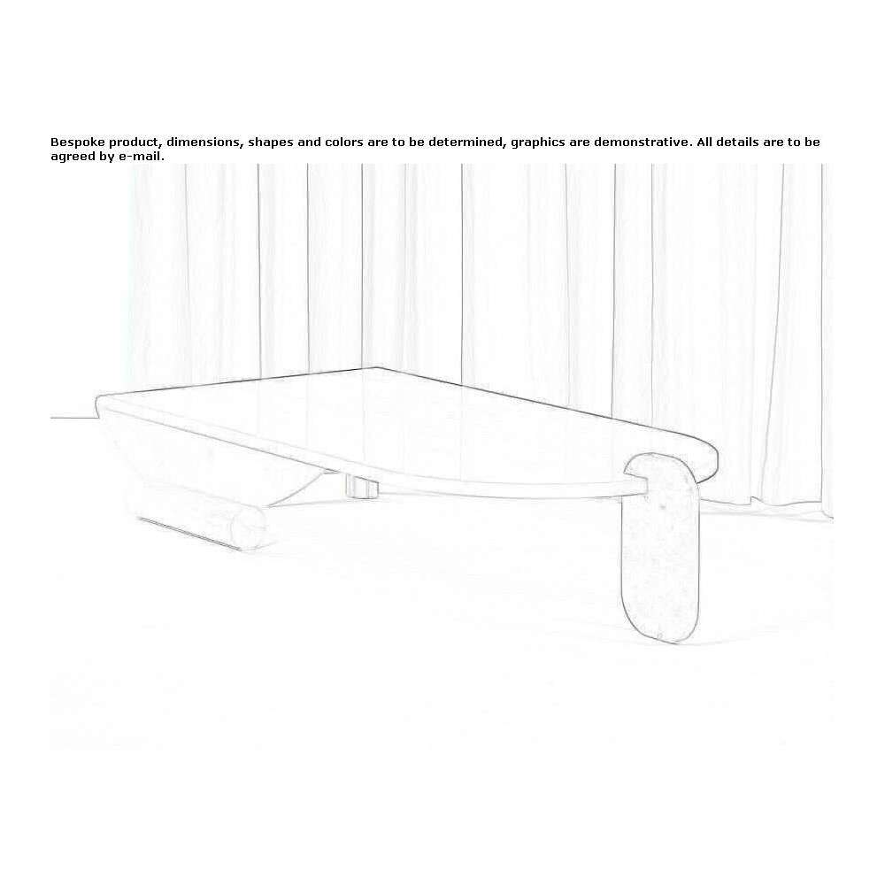 Metalowa podstawa: polerowana lub satyna: mosiądz, miedź lub nikiel Zasadnicze kształty tych stołów współgrają między nimi w kuszącej grze proporcji i kolorów, co skutkuje stworzeniem idealna równowaga i napięcie przestrzeni materialnej i negatywnej. Brak figuratywnych kształtów pozwala spojrzeć na tę pracę pod różnymi kątami i wyobrazić sobie różne rzeczy.