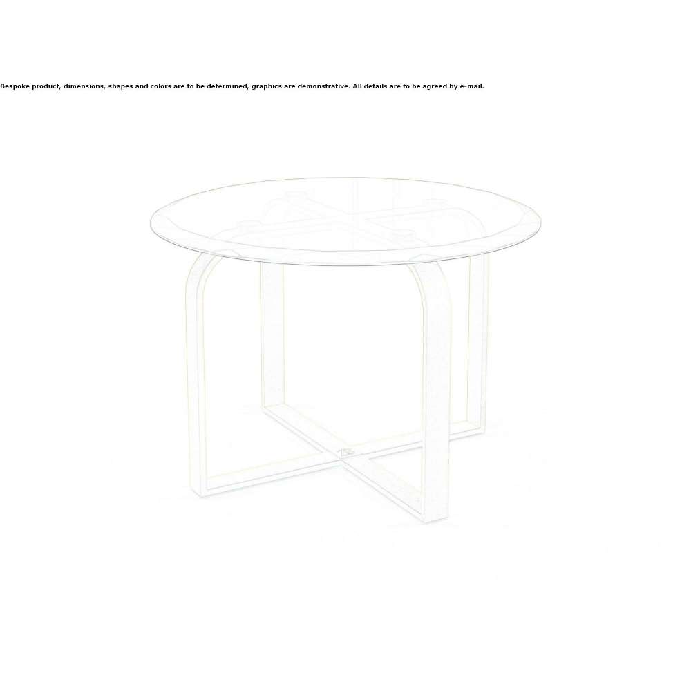 Tulip to okrągły stół z metalową ramą; dostępny w wykończeniu satynowym złotem. Blat ze szkła w kolorze brązu (skośna krawędź w kształcie diamentu).