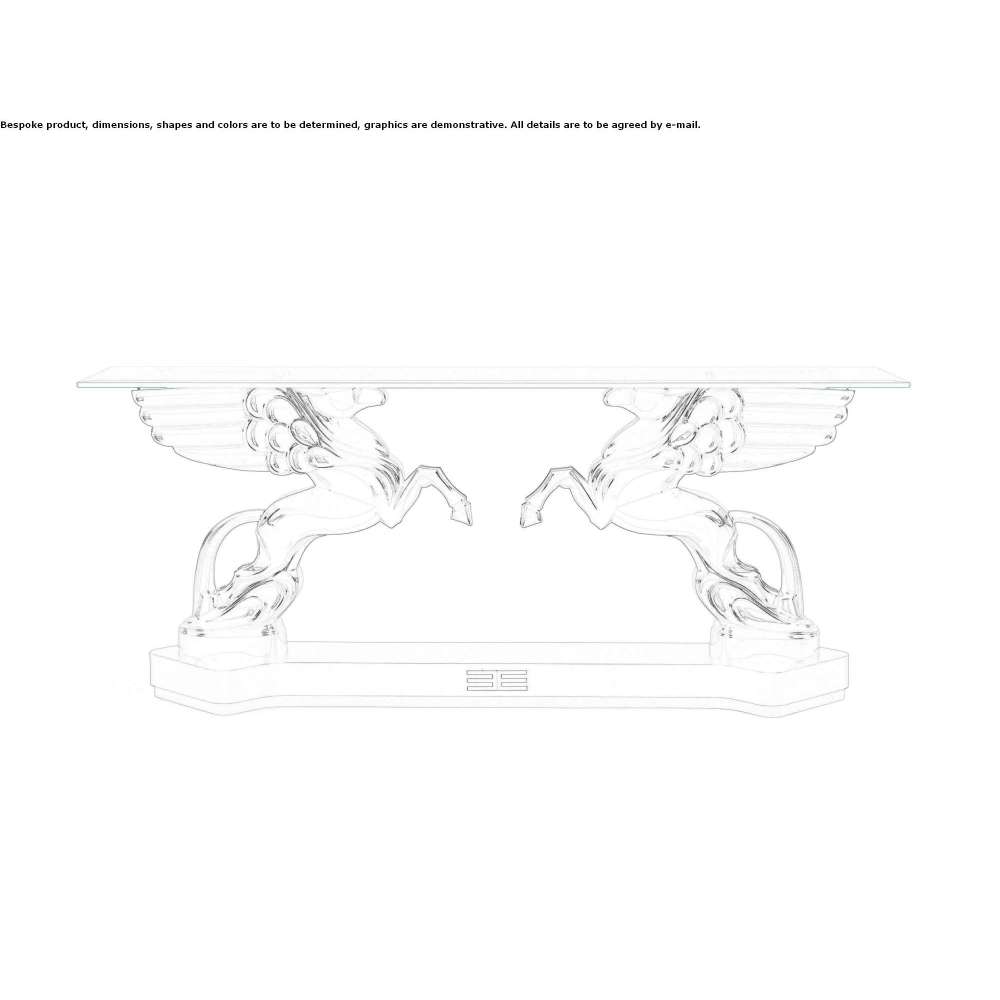 Podstawa z matowego drewna barwionego na ciemny wengé z detalami w kolorze Polerowany mosiądz. Pegasus z błyszczącym czarnym lub błyszczącym czerwonym lakierem. Blat z fazowanego szkła przezroczystego lub brązowego. Inne wykończenia i tapicerki dostępne na życzenie w kolekcji Etro Home Interiors.
