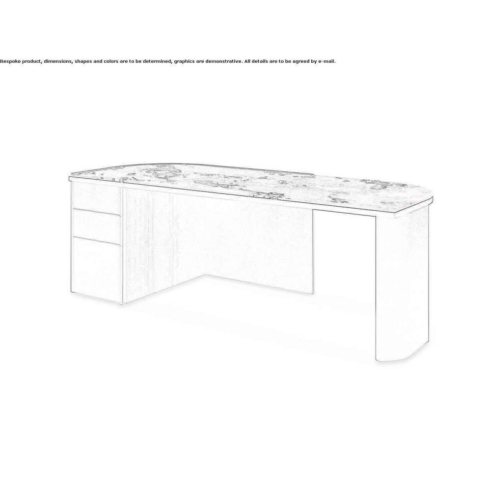 Joni Stone to biurko z marmuru i drewna z szufladami.