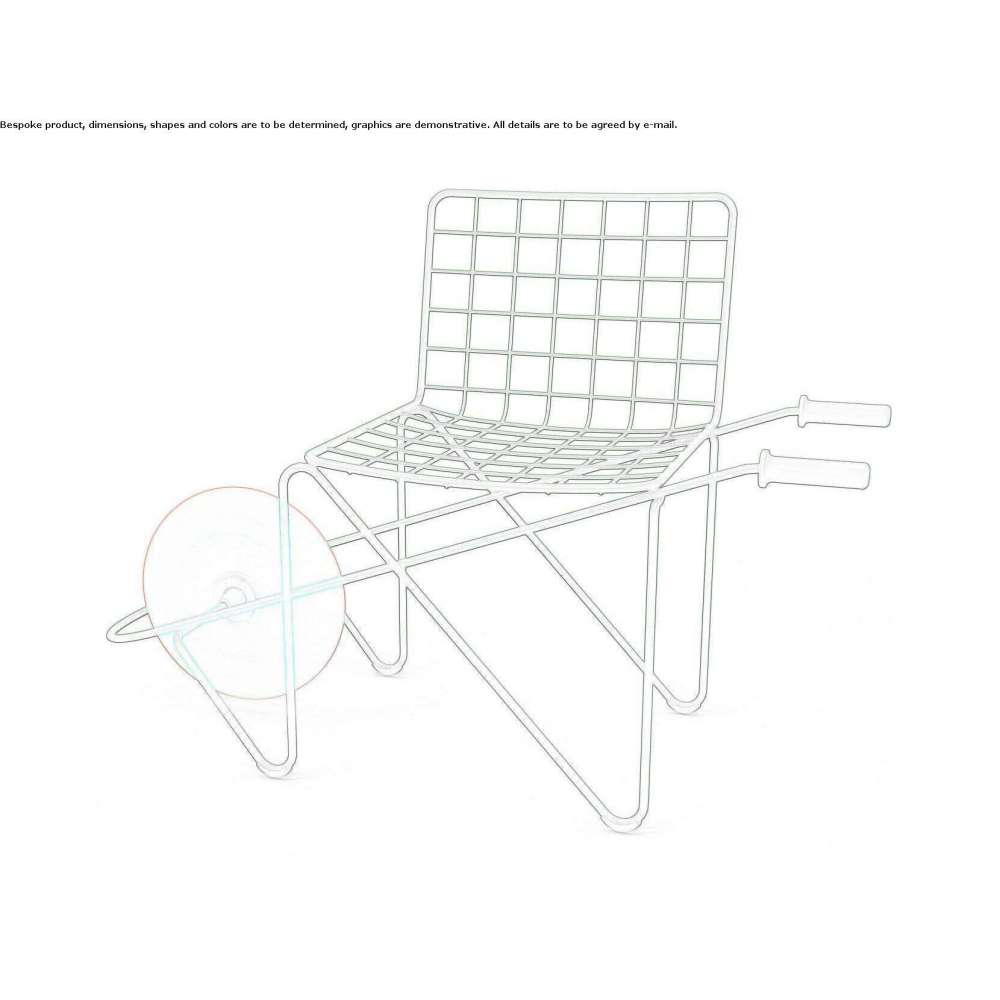 To mobilne krzesło dla dzieci wykonane jest ze stalowego pręta i formowanego obrotowo koła.