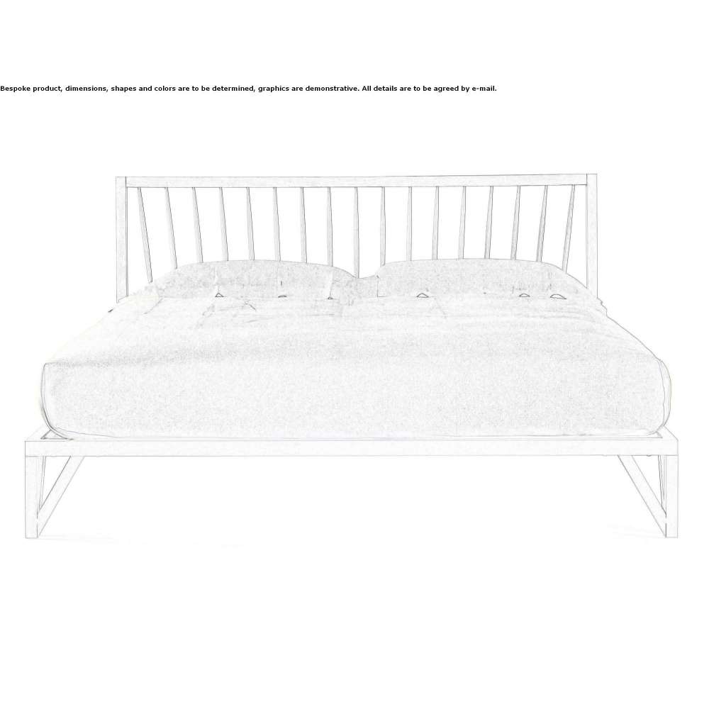Łóżko P-620 wykończone w kolorze naturalnego szarego orzecha. Dostępny z tapicerką zagłówka lub bez, ten mebel wyraża minimalistyczny design, charakteryzujący się czystymi liniami i wyrafinowanymi detalami, w tym szczególną formą drewnianych nóg.