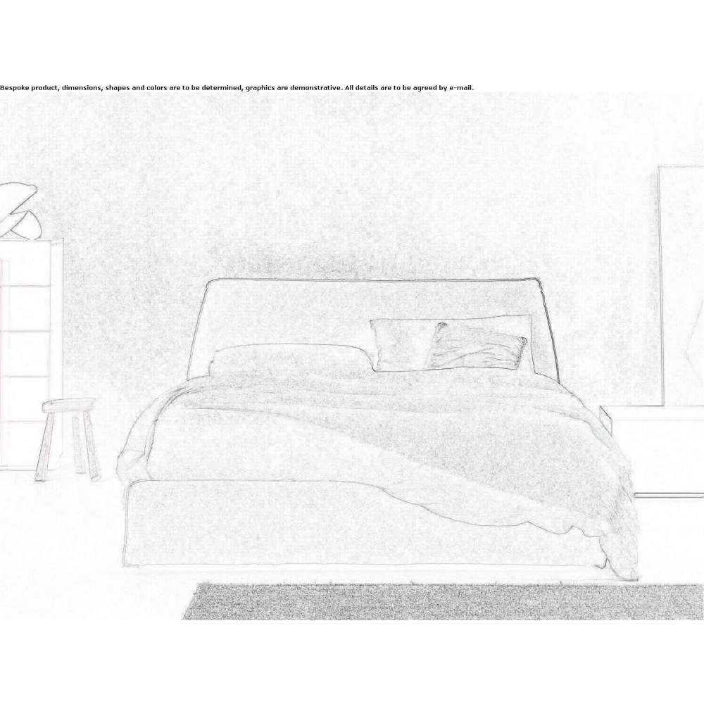 Zagłówek i rama łóżka z tkaniny lub ekoskóry, dopasowane lub kontrastowe szwy wezgłowia. Dostępne w wersjach z podstawą do przechowywania lub bez.