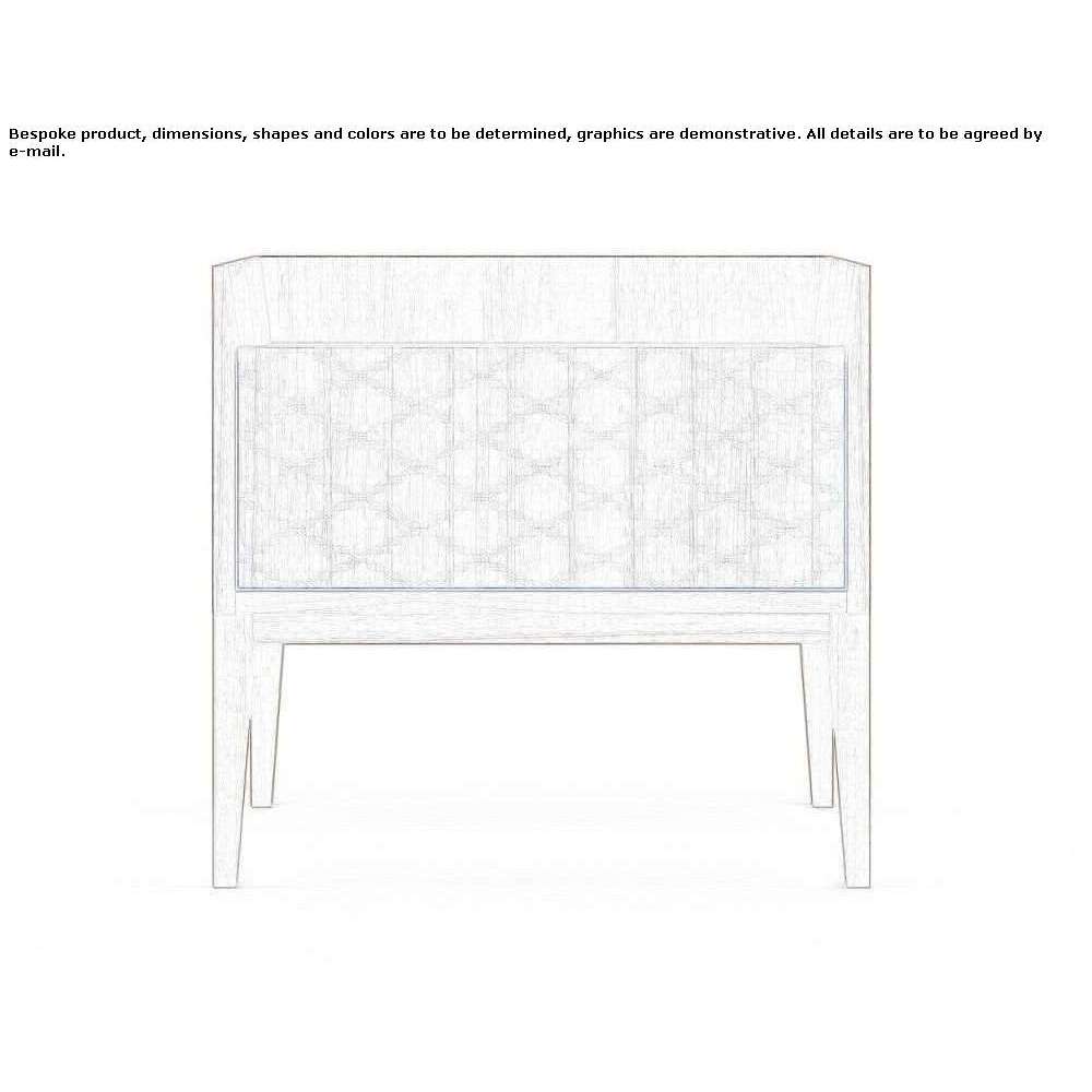 Drewniana podstawa H 27. Stolik nocny ozdobiony grawerem T.4A „Nieskończone kombinacje kształtów i kolorów dla TRAME, kolekcji pojemników zaprojektowanej przez Manuelę Pelizzon. Rygorystyczne i istotne linie ozdobione