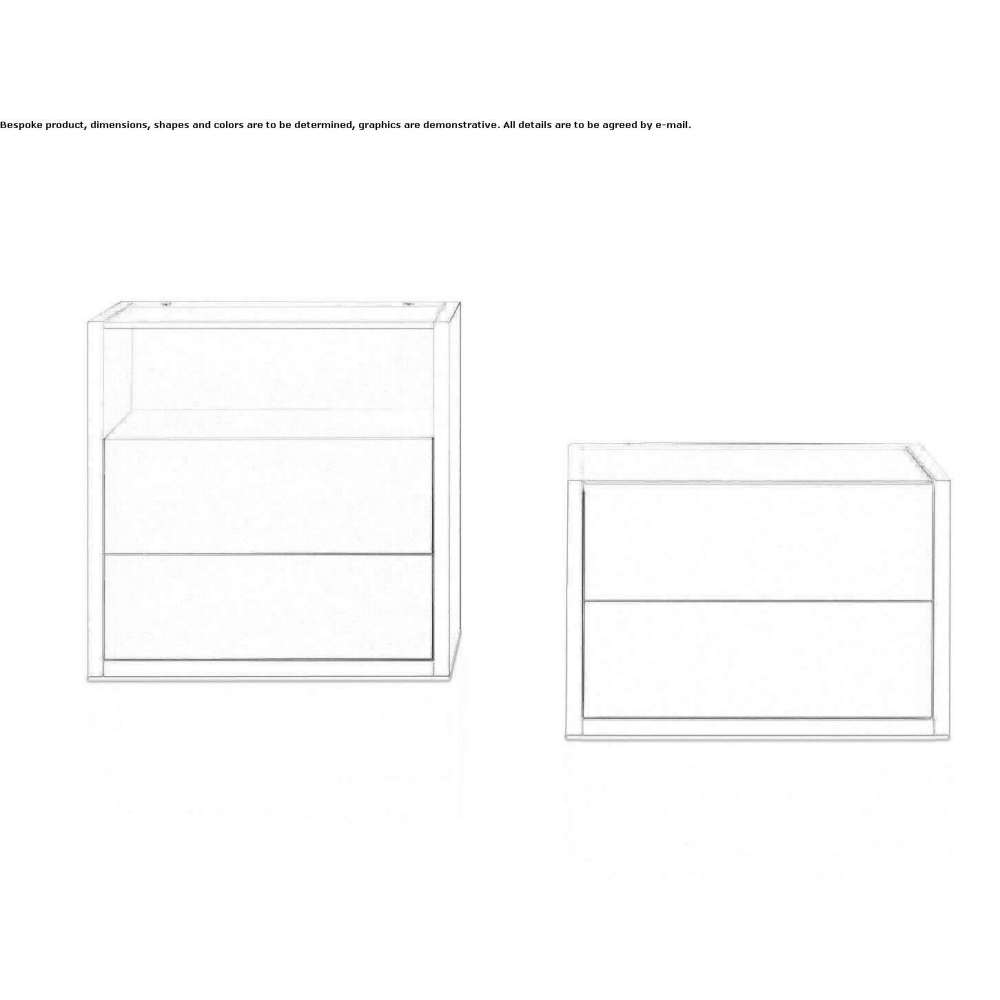 Seria stolików nocnych i szafek nocnych o strukturze teksturowanego wykończenia. Fronty mogą być również wykonane ze szkła lakierowanego w stylu retro. Kolekcja dostępna jest również w wersji otwartej, a blat ze szkła lakierowanego w stylu retro. Szuflady otwierają się za pomocą centralnego „ systemem push-pull.