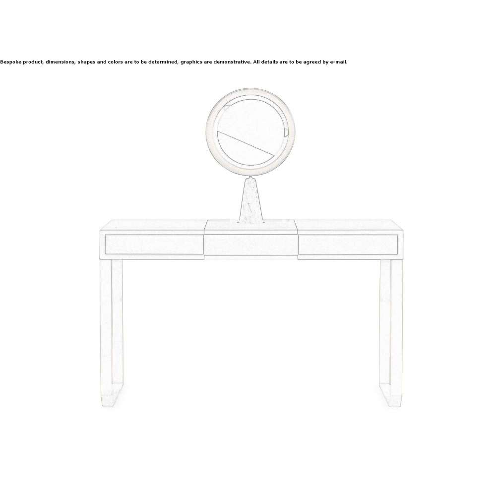 Selene to toaletka z białego drewna Taba Frisé i czarnego drewna Tanganika. Części metalowe lakierowane w kolorze satynowego mosiądzu. Lustro fazowane o grubości 6 mm, wyjątkowo lekkie. Ze światłem LED (15 W; 108 lm/w; 3000 K). Części metalowe z satynowego mosiądzu i podstawa z marmuru Nero Marquinia.