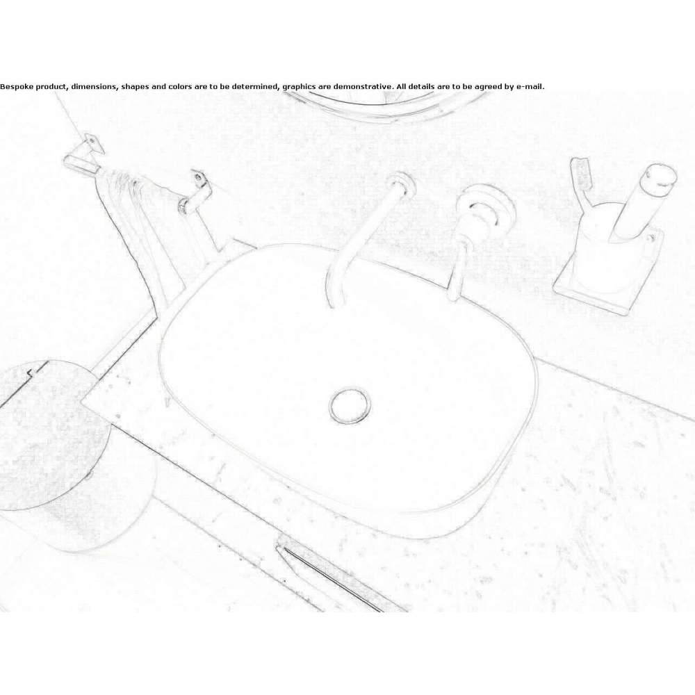 Umywalka nablatowa w kolorze białym lub dwukolorowym biobazowym Cristalplant® (na zewnątrz w kolorze ciemnoszarym RAL7021 lub jasnoszarym RAL 7044), bez otworu na baterię, bez przelewu. Umywalka wyposażona jest w korek z korkiem zlicowanym z wewnętrzną powierzchnią umywalki w tym samym wykończeniu co sama umywalka.