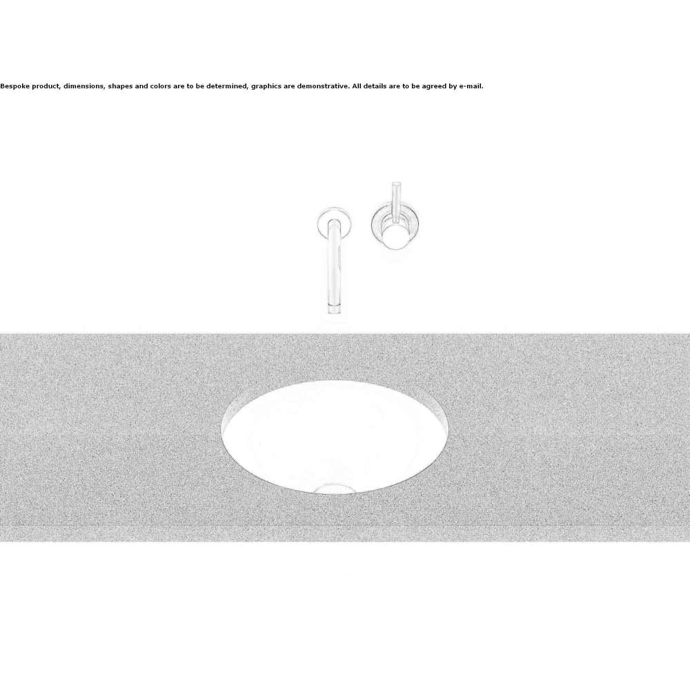 Umywalka podtynkowa okrągła, średnica formy 359 mm, głębokość 140 mm, bez otworu na baterię, z przelewem, w komplecie z zestawem przelewowym.