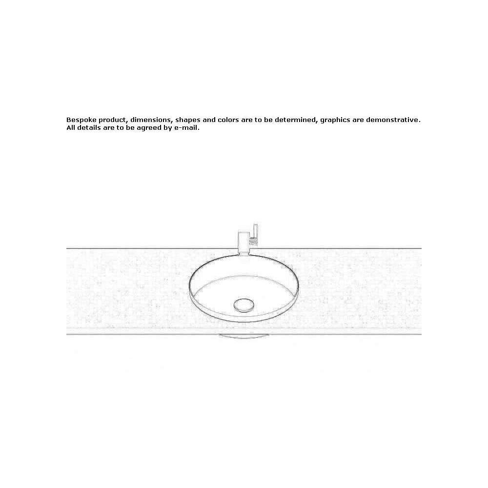 Umywalka do zabudowy okrągła ø 400mm, wysokość 114mm, z czego 25mm wystaje ponad blat, przeszklona wewnątrz i na zewnątrz, zoptymalizowana do montażu w blatach 30mm, bez otworu na baterię i przelewu, w zestawie zawór spustowy z chromowaną nasadką