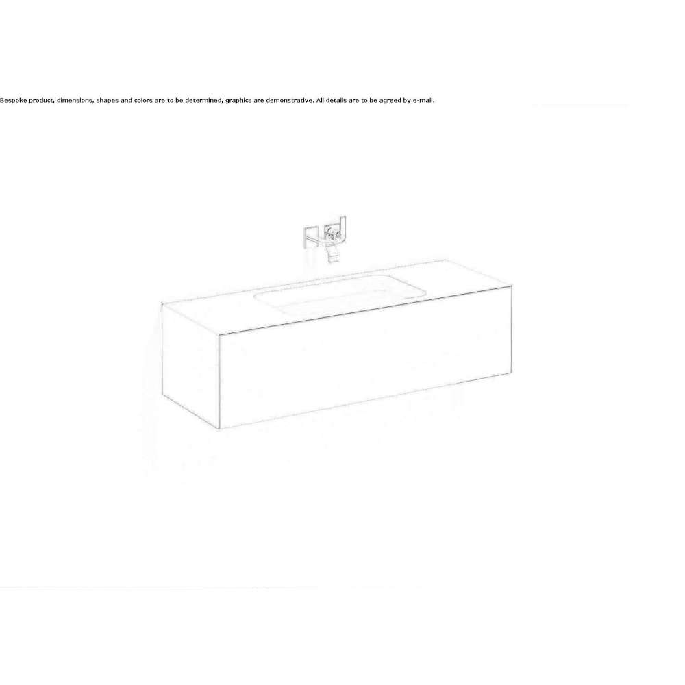 Umywalka prostokątna, 1254 x 450 mm, wysokość 350 mm, prostokątna forma bez otworu na baterię, bez przelewu, boczna biała przeszklona pokrywa umywalki, szafka stojąca bez uchwytów z funkcją push to open, szuflada na całej głębokości, powierzchnia mebli z wykończeniem jedwabiście matowym, łącznie z odpływem zawór z okrągłym, białym, szkliwionym kołpakiem, syfonem oszczędzającym miejsce i zestawem montażowym
