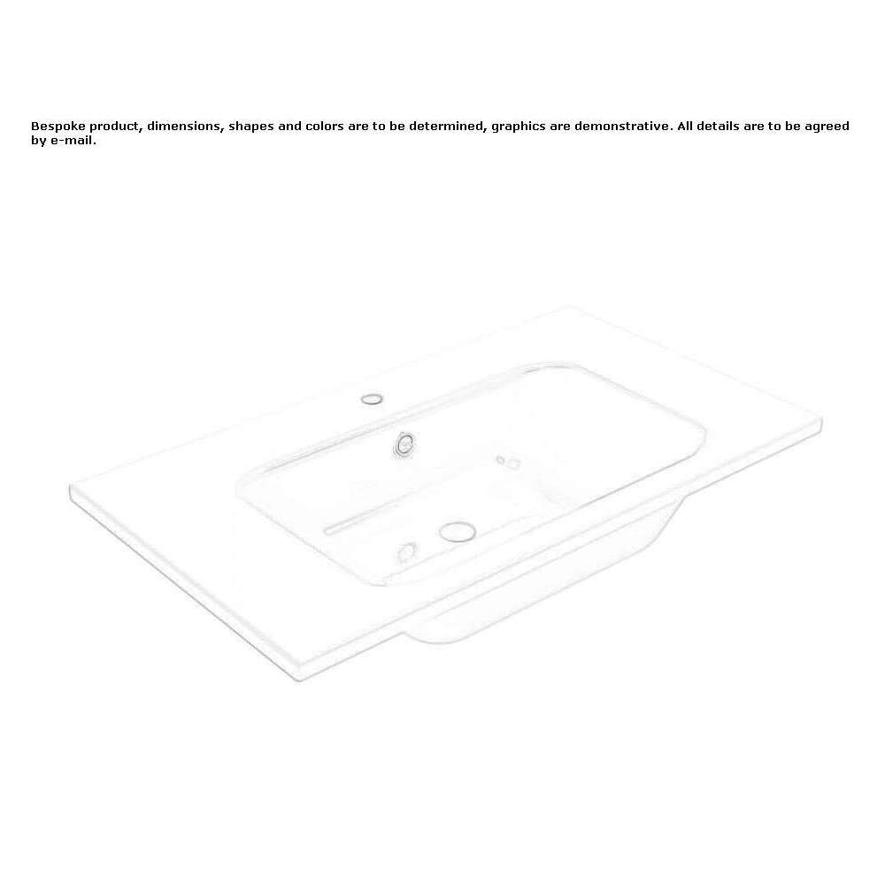 Zintegrowana umywalka z kompozytowego marmuru z centralną wanną, w pełni zintegrowana i z otworem na baterię.