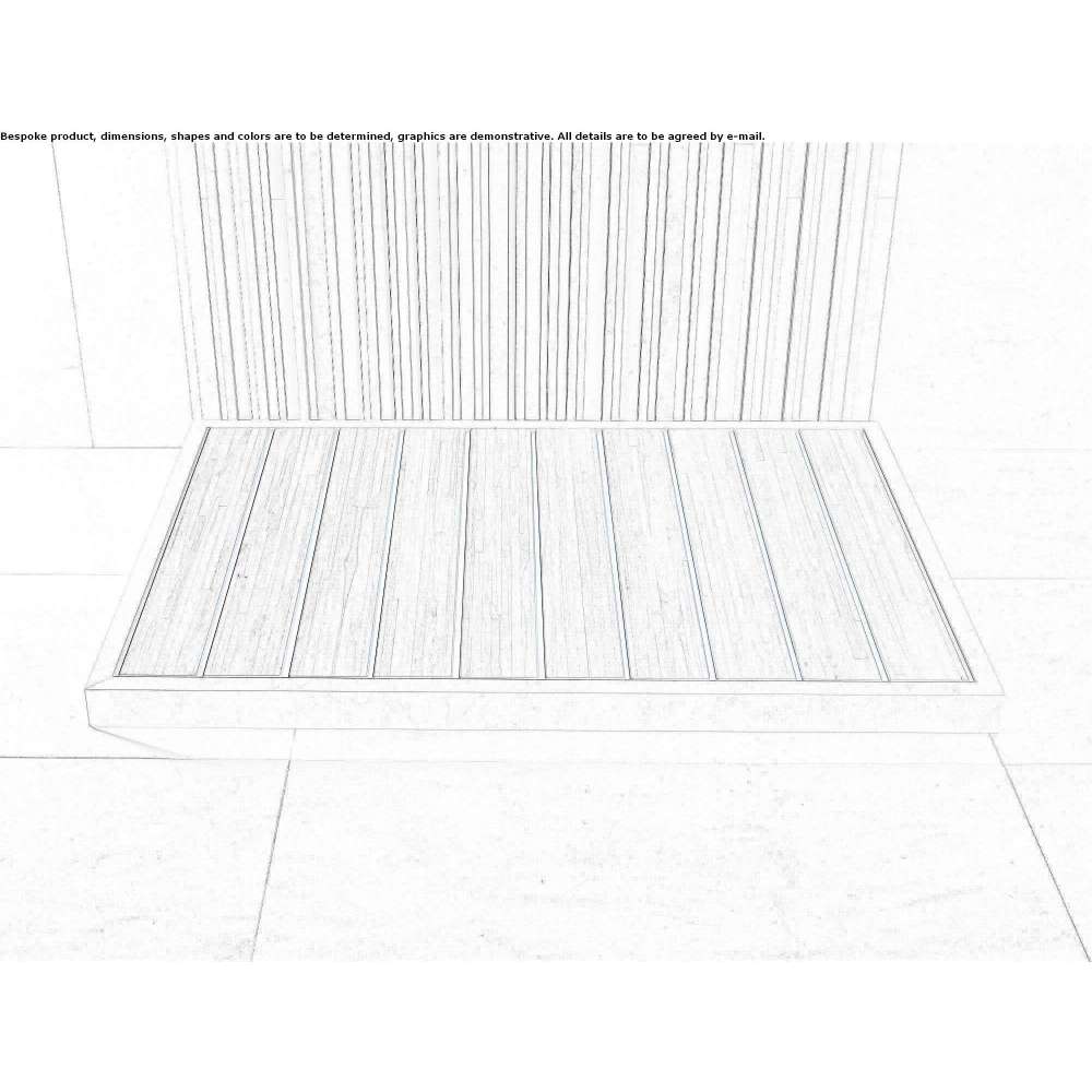 Składa się z listew z drewna tekowego pochodzącego z recyklingu, oprawionych w ramę z kamienia naturalnego: do wyboru Bianco Carrara, Crema d'Orcia, Silk Georgette i Pietra d'Avola.