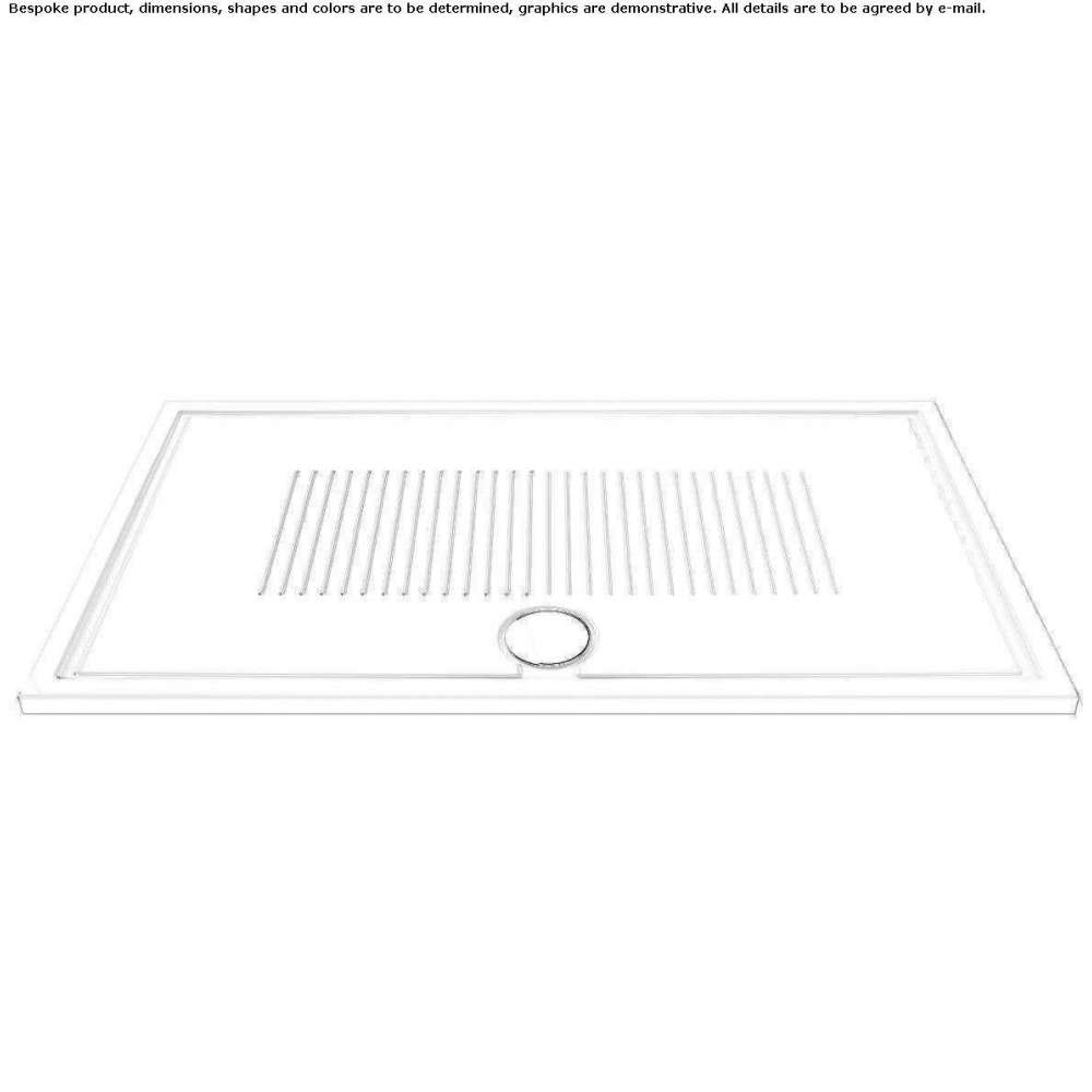 H3 to antypoślizgowy prostokątny brodzik ceramiczny. Montaż na podłodze lub na podłodze. Blat ze specjalną antypoślizgową, reliefową dekoracją. Błyszcząca biel. Dostępne w wielu rozmiarach.