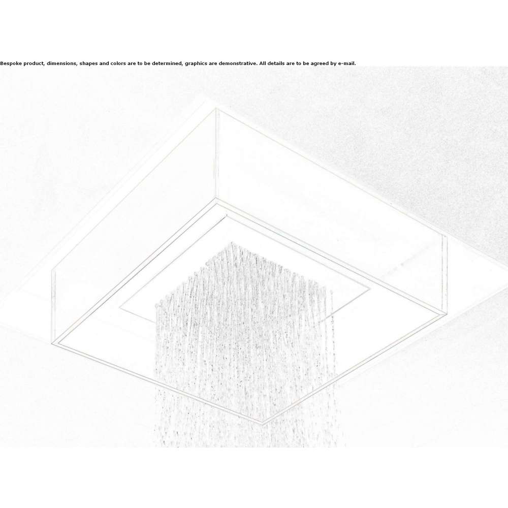 Ukryta głowica prysznicowa ze stali nierdzewnej AISI 316, ze strumieniem deszczowym i systemem oświetlenia do chromoterapii. Wyposażona w sterowanie za pomocą przycisków.