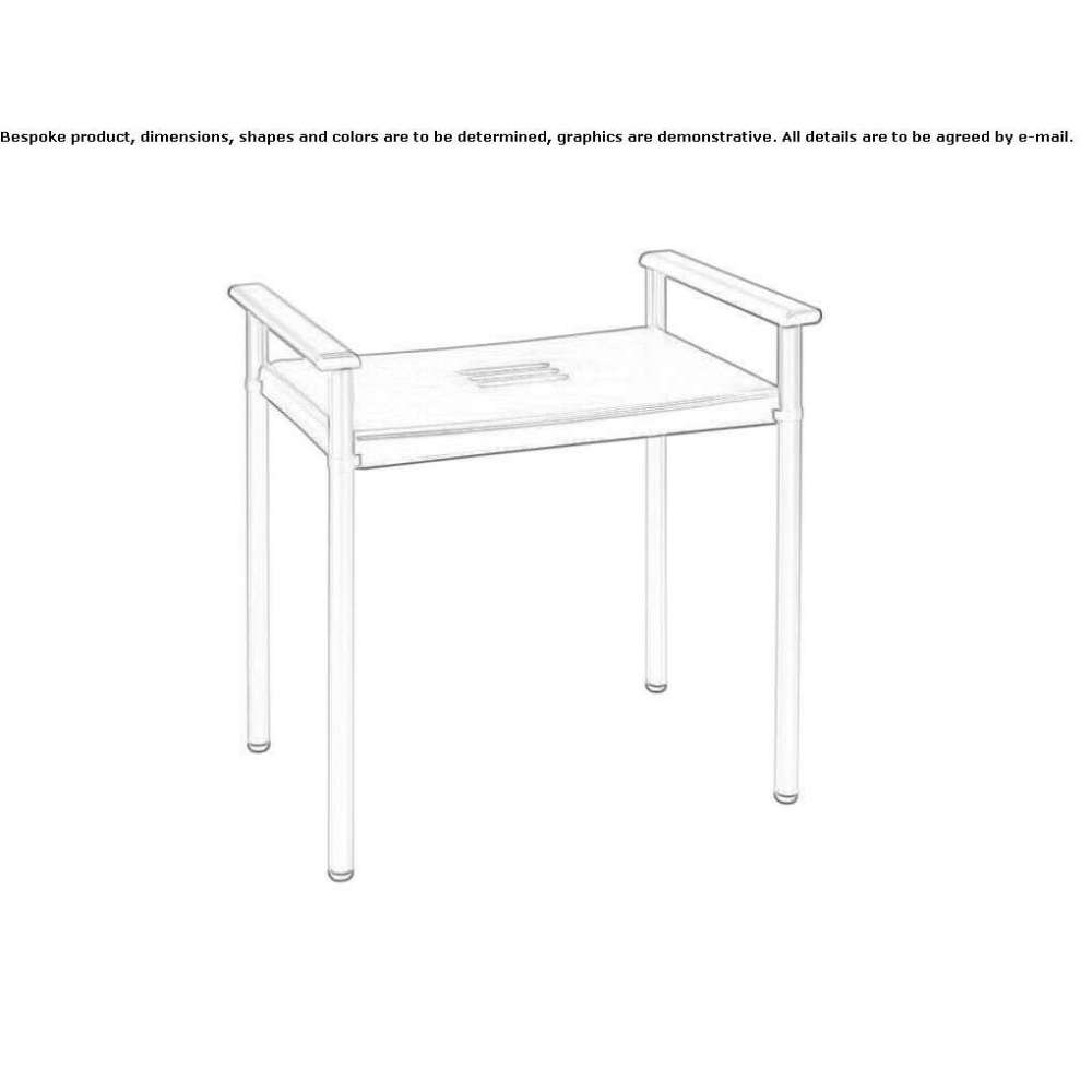 Stołek łazienkowy z podłokietnikami. Rama aluminiowa, siedzisko z pianki poliuretanowej.