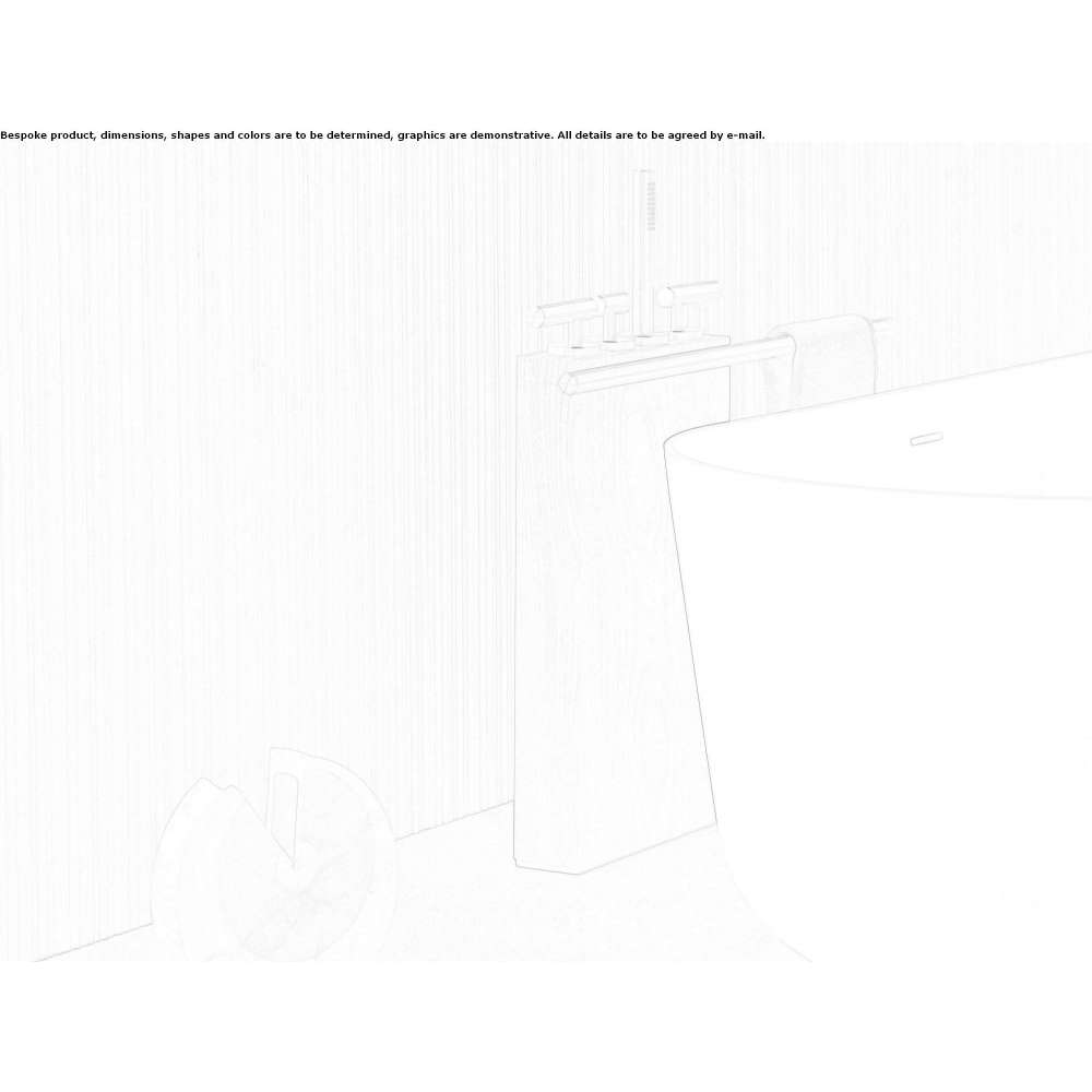 Uchwyt na baterię do wanny wolnostojącej ze zintegrowanym rurowym uchwytem na ręcznik. Kompatybilne z kranami Acquifero i Cilindro firmy Falper. Kompozycja o szerokości 80 cm, wysokości 56 cm i głębokości 7,8 cm. Struktura dostępna w wykończeniach drewnianych oraz w błyszczących i matowych lakierach w katalogu. Uchwyt na ręczniki ze stali nierdzewnej AISI 304 z wykończeniem ze stali nierdzewnej. Projekt pozwala na zastosowanie baterii pokładowych w przypadku wanien wolnostojących, które nie posiadają żadnej grubości na krawędzi.